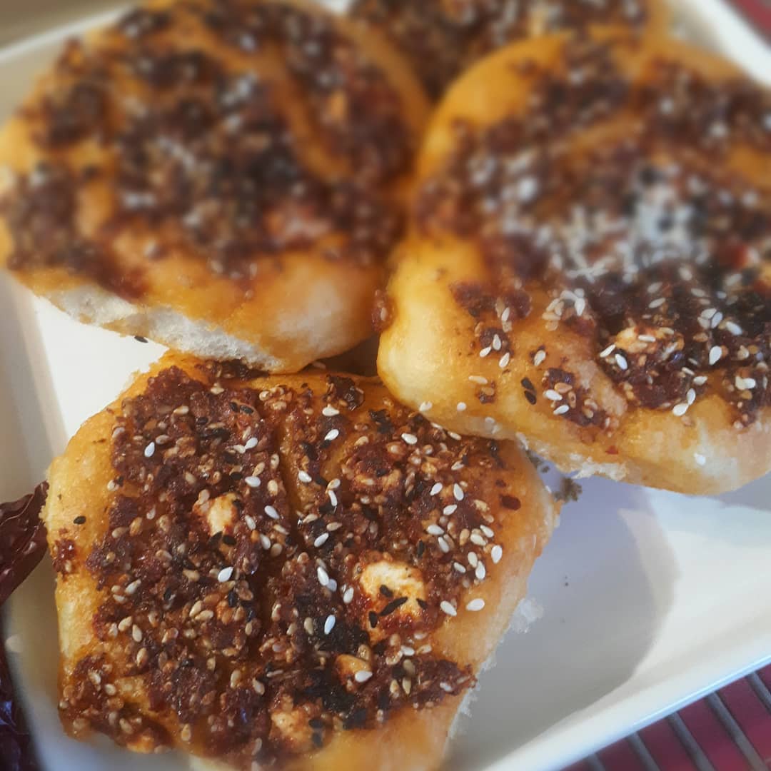 - Hamur mayalandıktan sonra yuvarlak parçalar koparıp yağlı kağıt serdiğimiz tepsiye dizelim üzerine sosumuzu pay edelim.