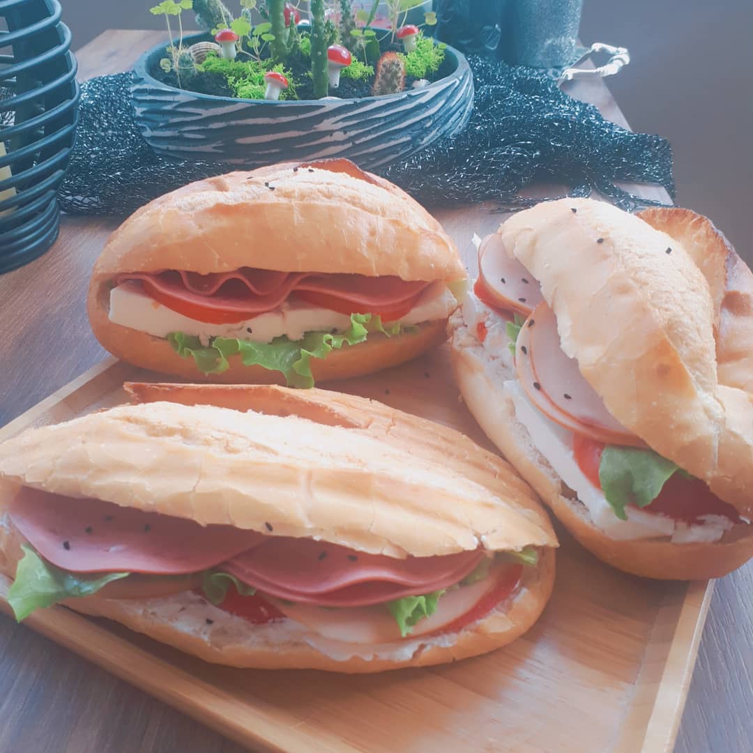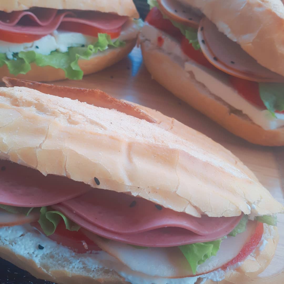 Ulus’tan aldığım mini ekmeklerin içerisine ilk önce krem peynir sürdüm ve hindi füme, marul, domates, beyaz peynir, hindi salam koydum. Güzel ve doyurucu oldu.