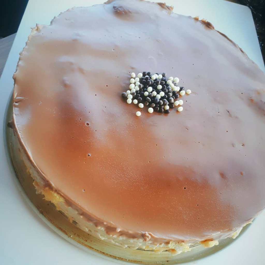 - Bir tavada 1 kutu krema ile 70 gr. çikolatayı eritelim ve pastanın üstüne dökelim.
