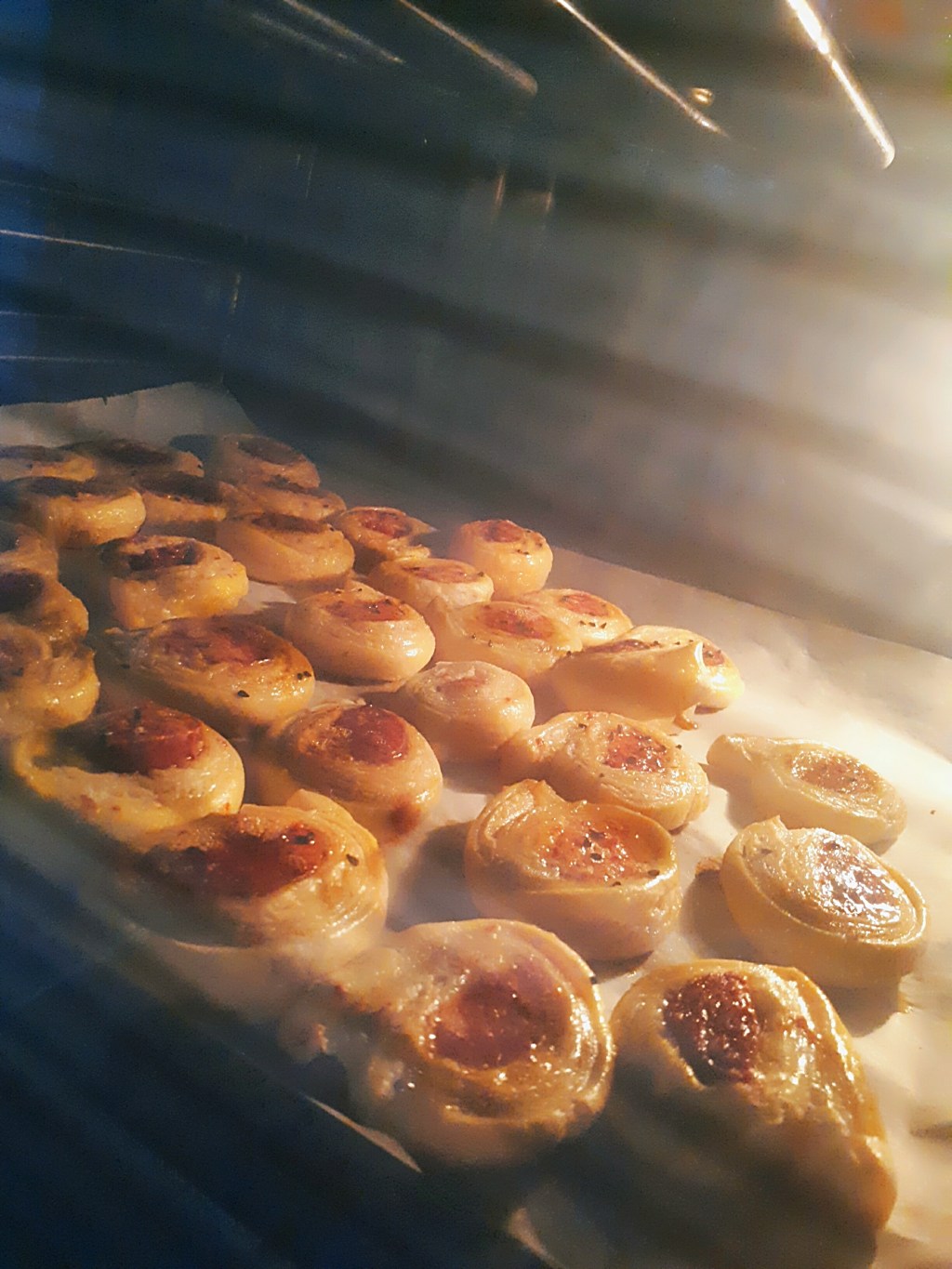- Yağlı kağıt serili tepsiye dizelim kenarlarına yumurta sarısı sürelim. Sterseniz üzerine çörek otu serpelim.170° önceden ısıtılmış fırında kenarları kızarana kadar pişirelim.