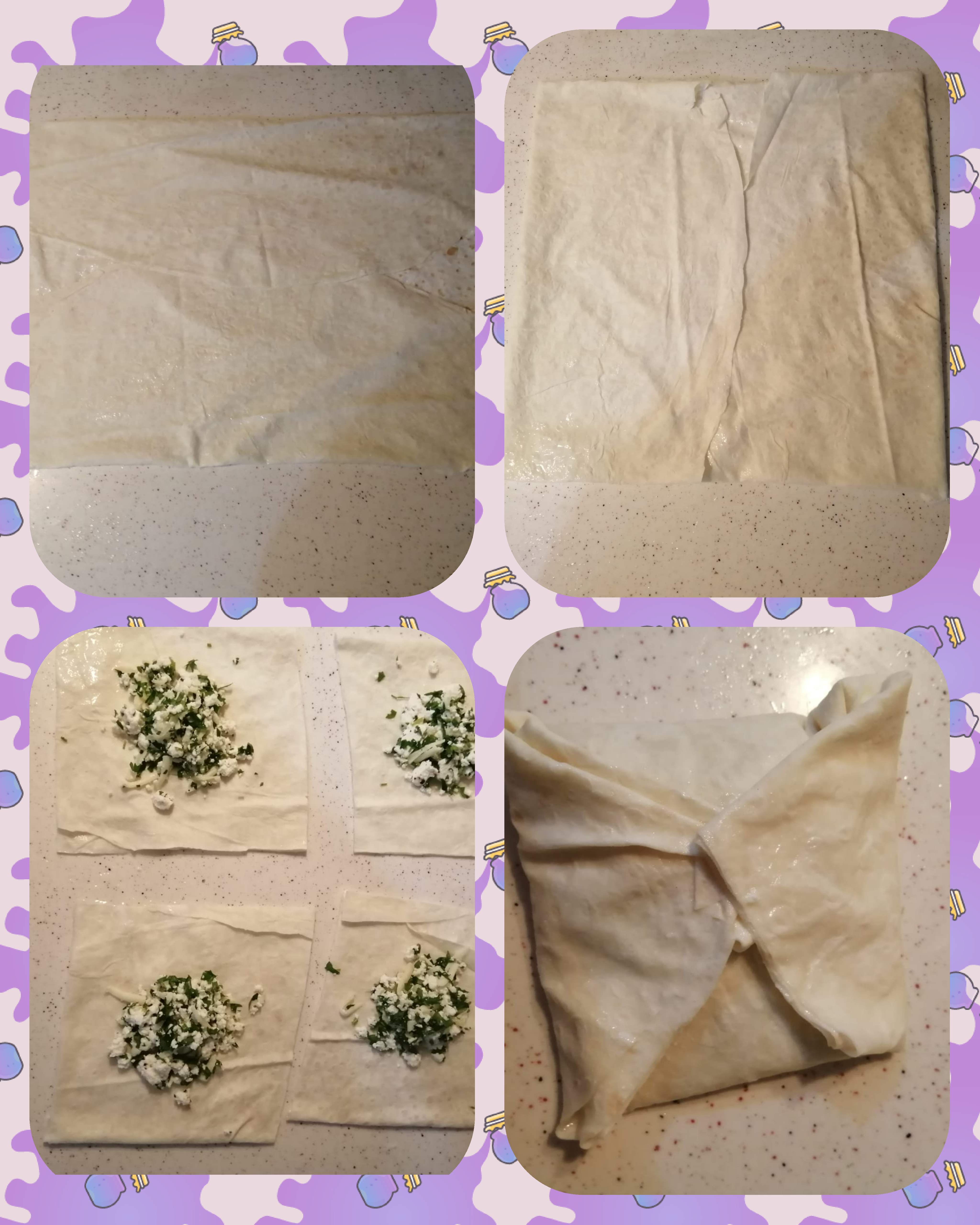 - Ortasına peynir konulduktan sonra köşeler birleştirilir.
