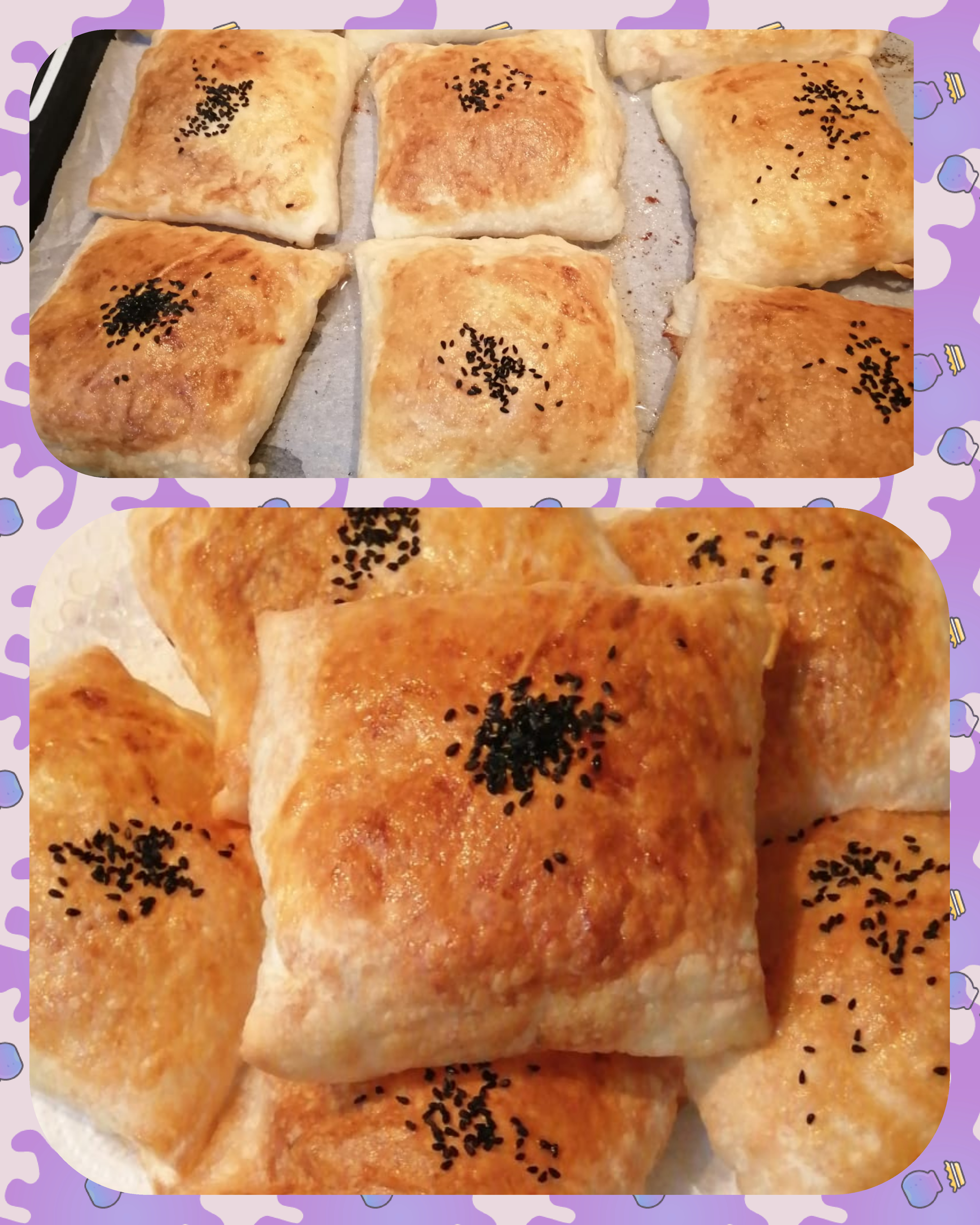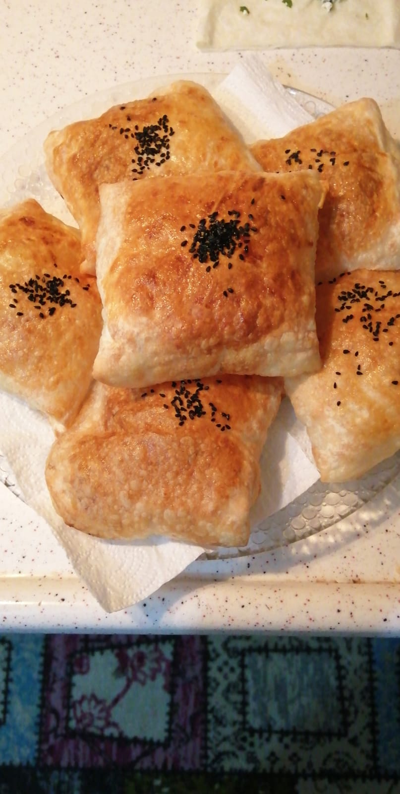 - Artan karışıma 1 yumurta eklenip iyice çırpılır. Böreklerin üzerine sürülür ve çörek otu serpilir.