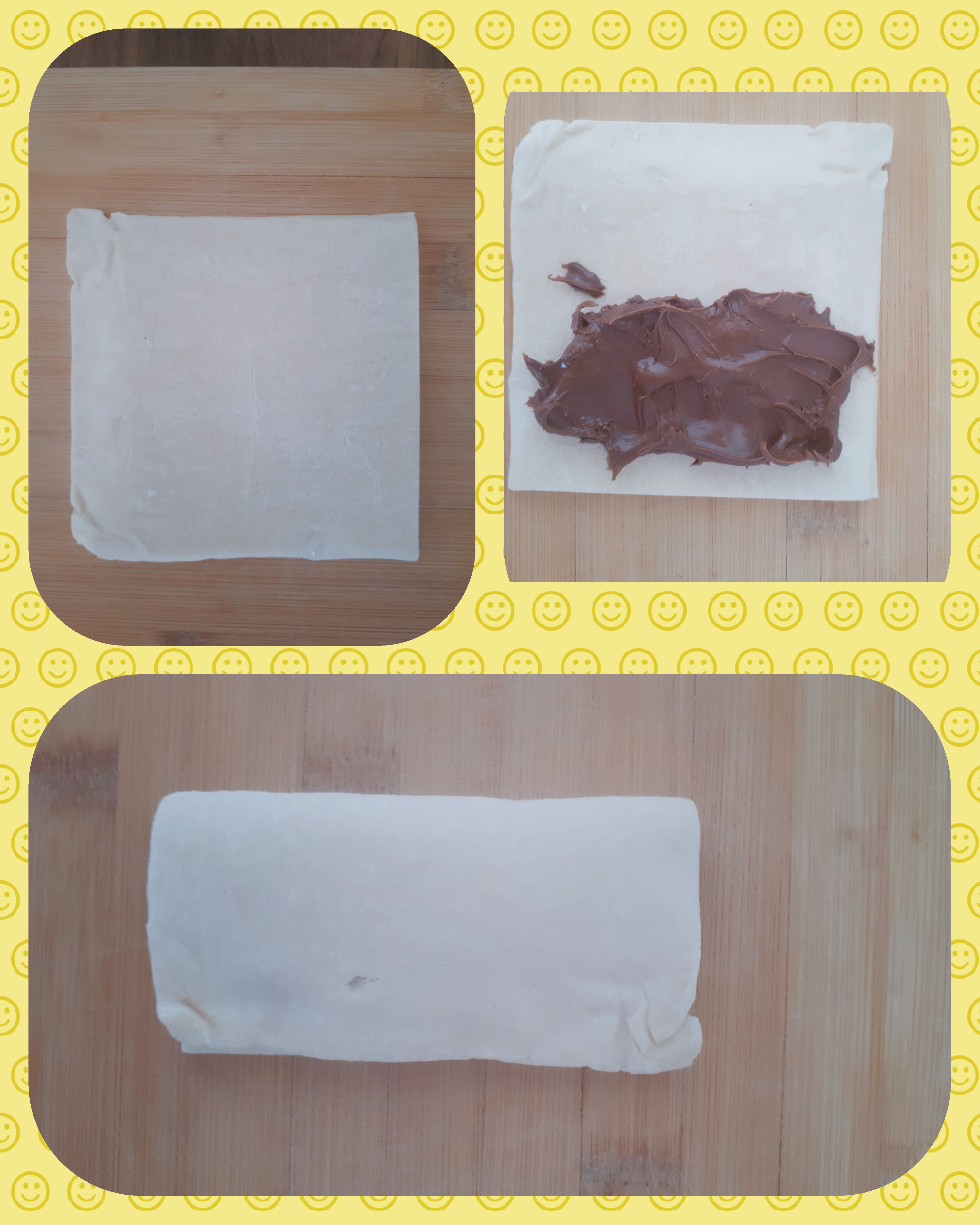 - Milföyün bir kenarına çikolata sürülür. Diğer tarafı ile kapatılır.