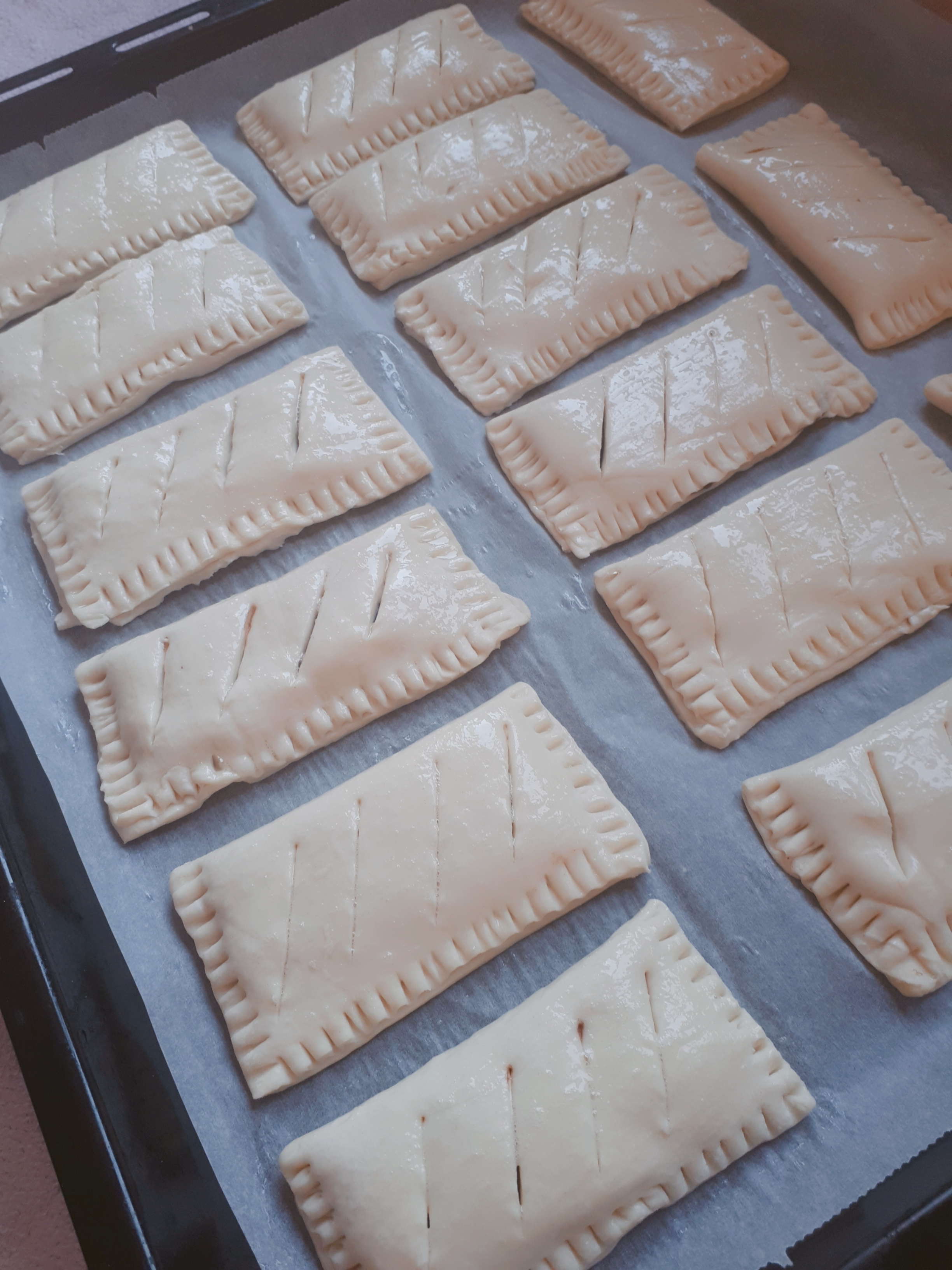 - Üzerine yumurta beyazı sürülür ve toz şekeri serpilir.