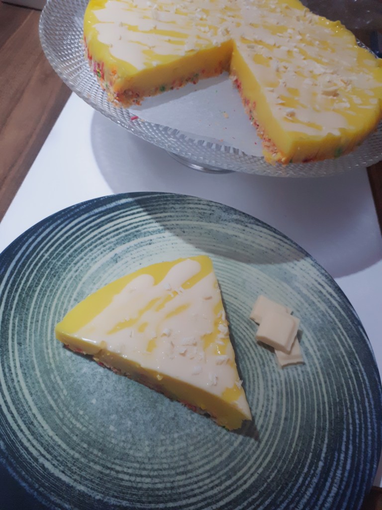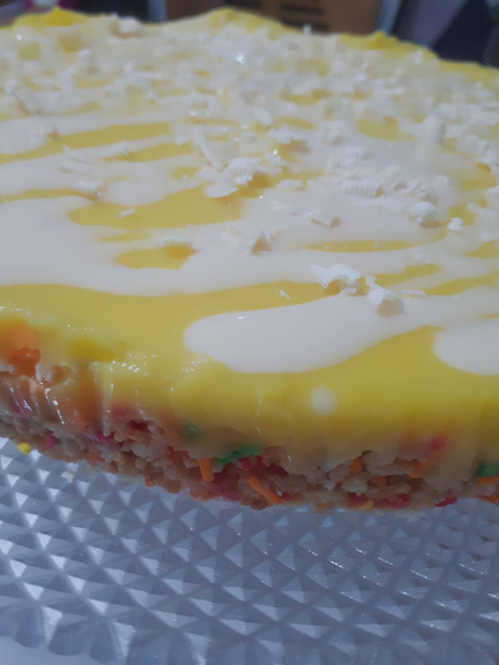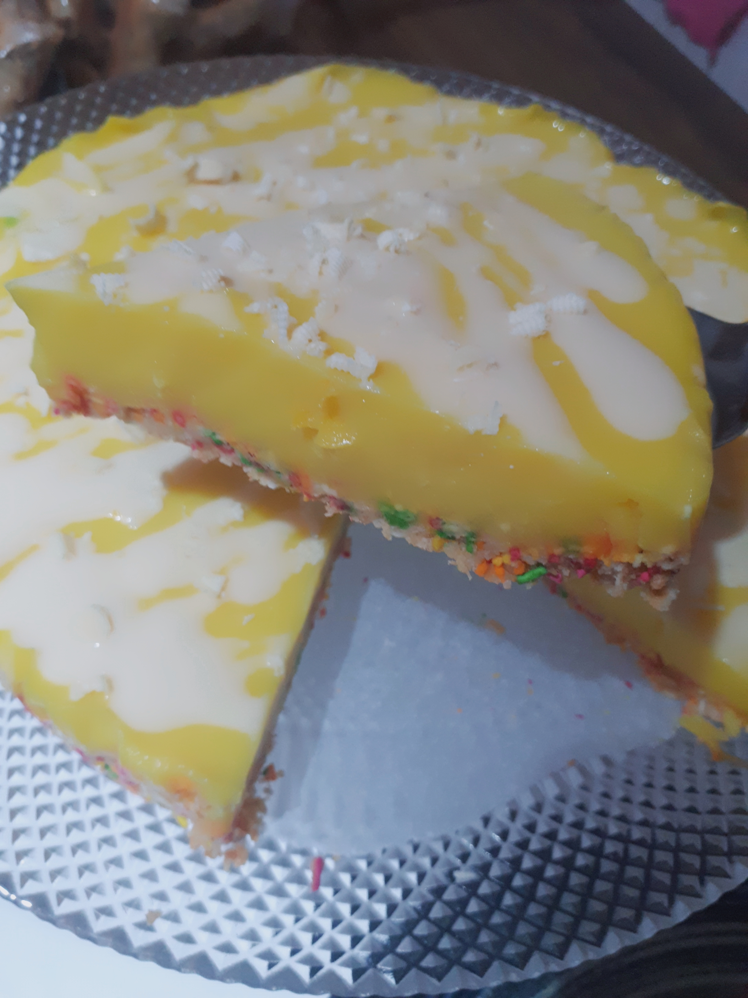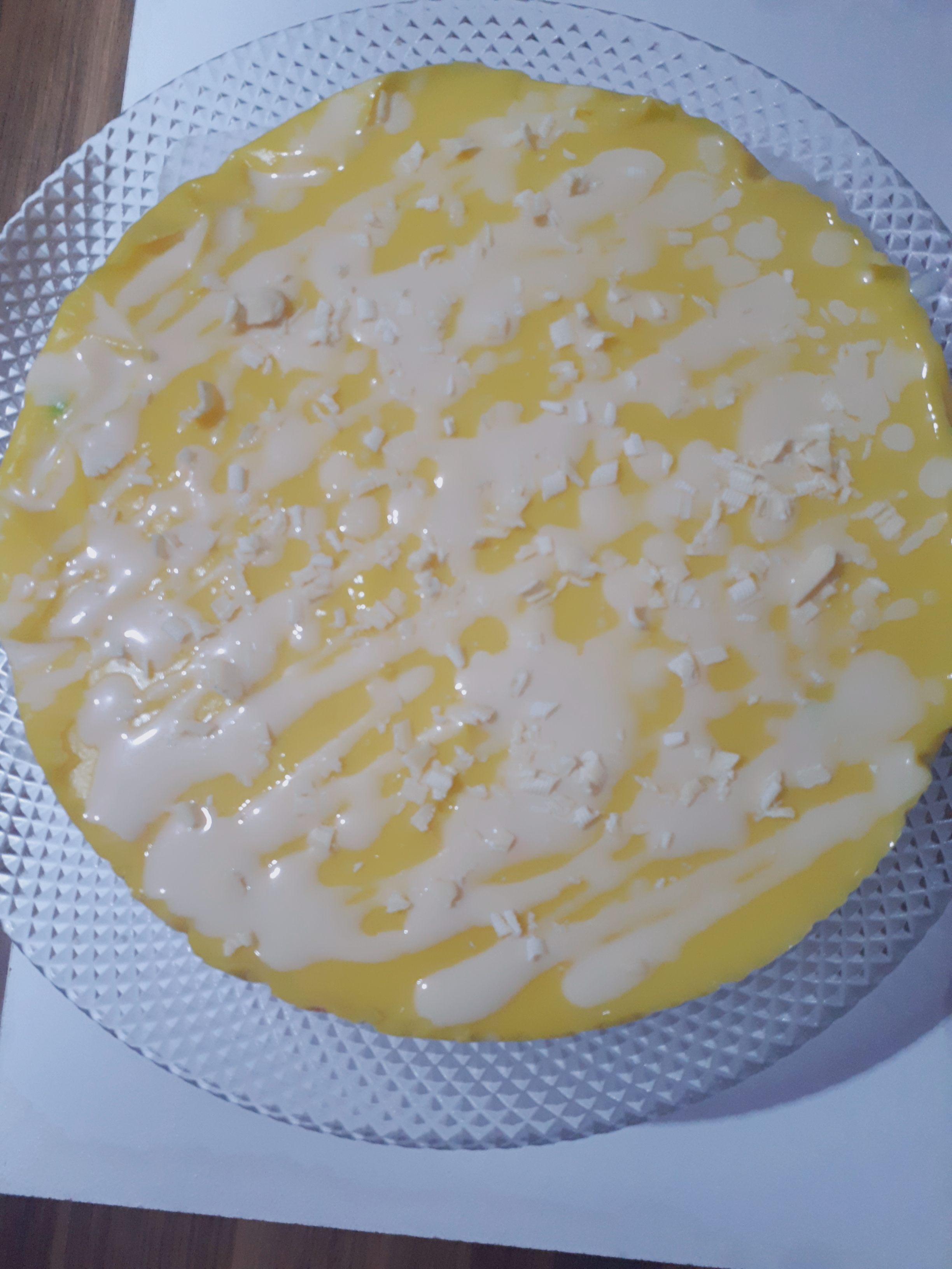 - Kelepçeli kek kalıbının tabanına ve kenarlarına yağlı kağıt serilir. Karışım dökülür ve düzleştirilir. Buzdolabına kaldırılır.