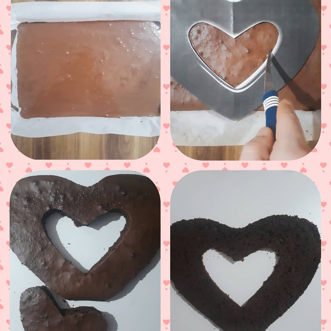 - Hazırladığımız şekilli kekin üzerine koyulur ve kesilir.