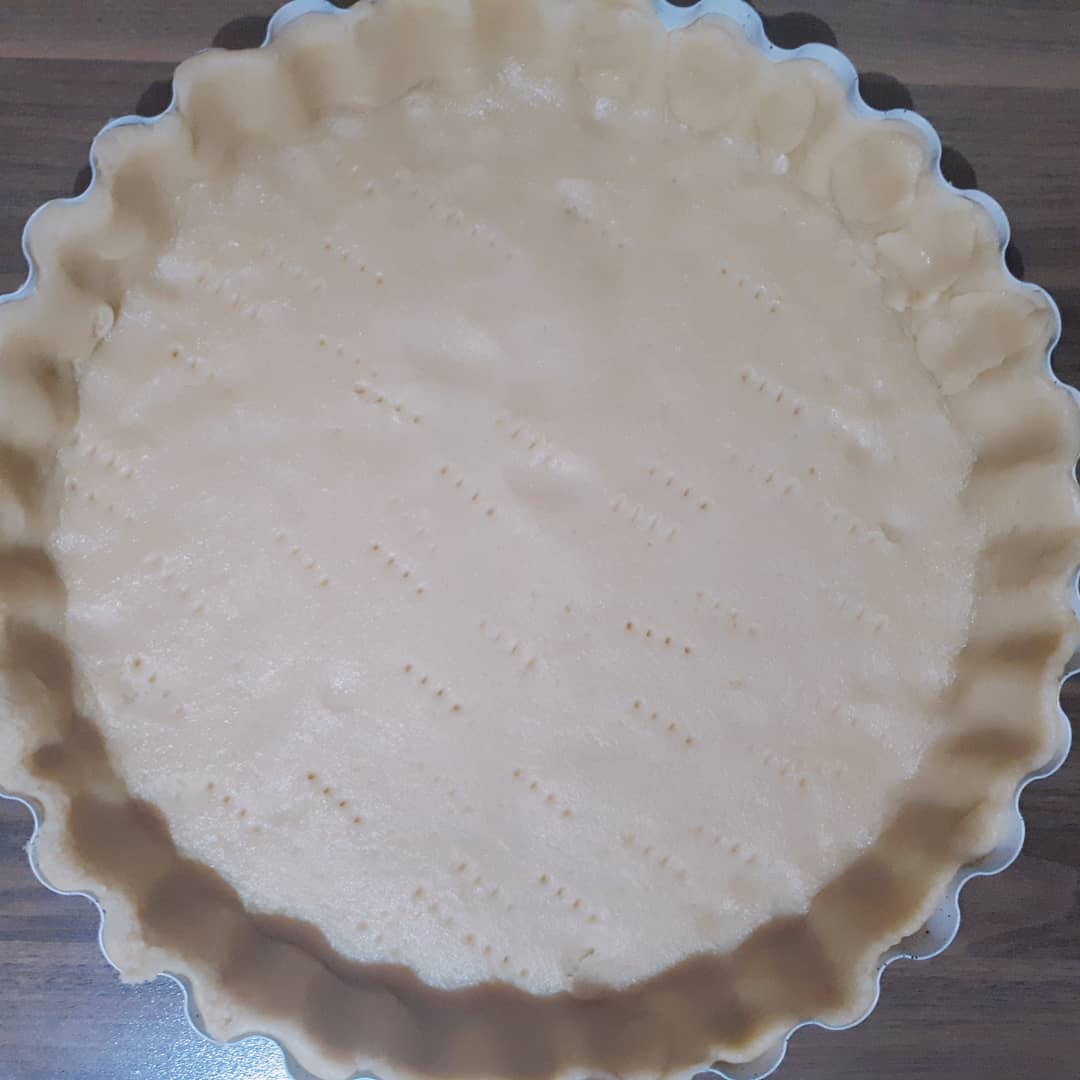 - Tart kalıbınızdan biraz büyük açalım ve kalıbın icerisine serelim, çatal yardımı ile ara ara hamura delikler açalım.