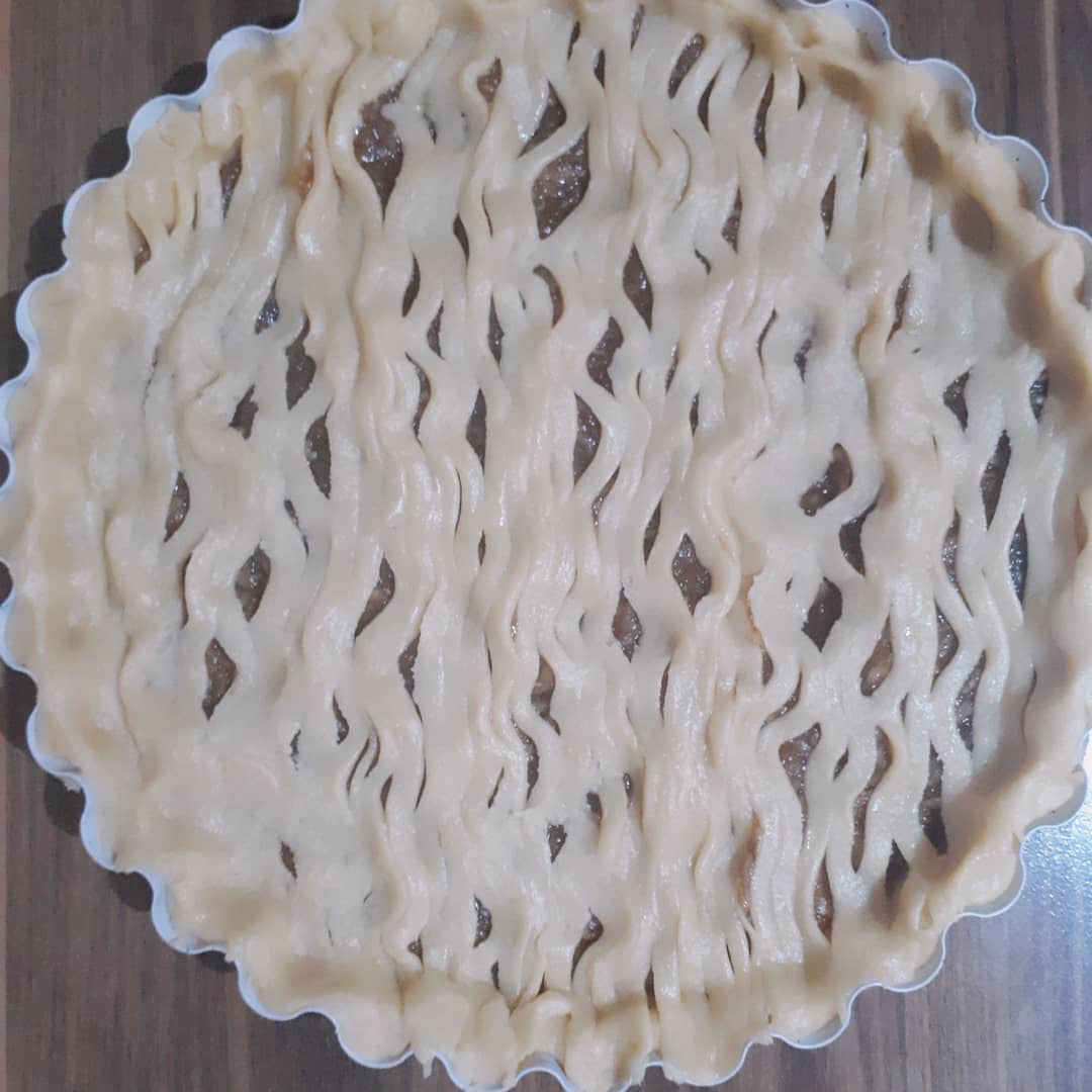 - Ayırdığımız hamur ile tartımızın üzerini örteceğiz.Ben hamur şekillendirici kullandım o şekli elde etmek için.