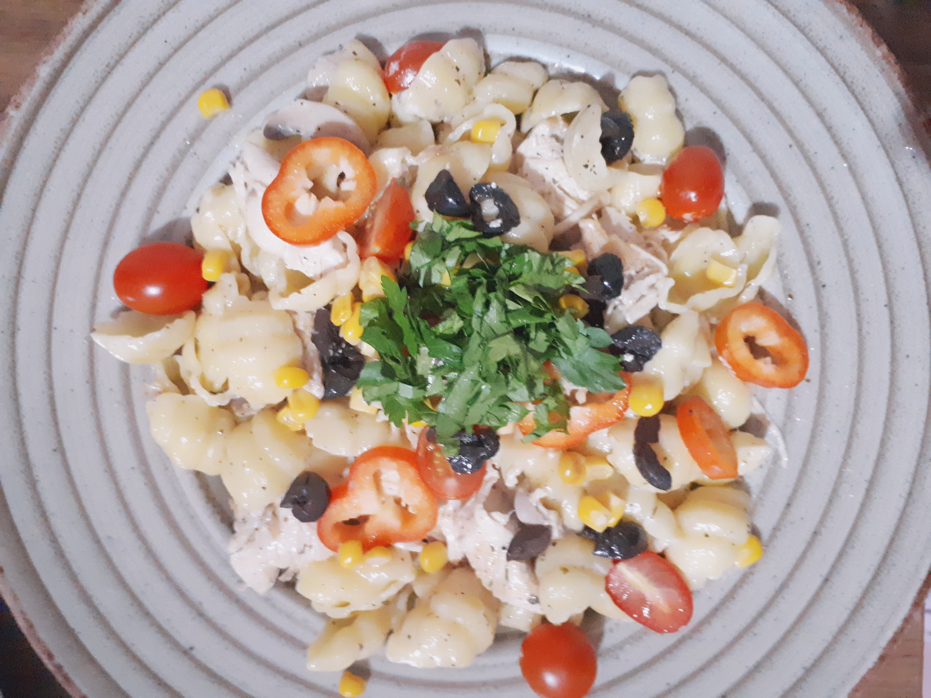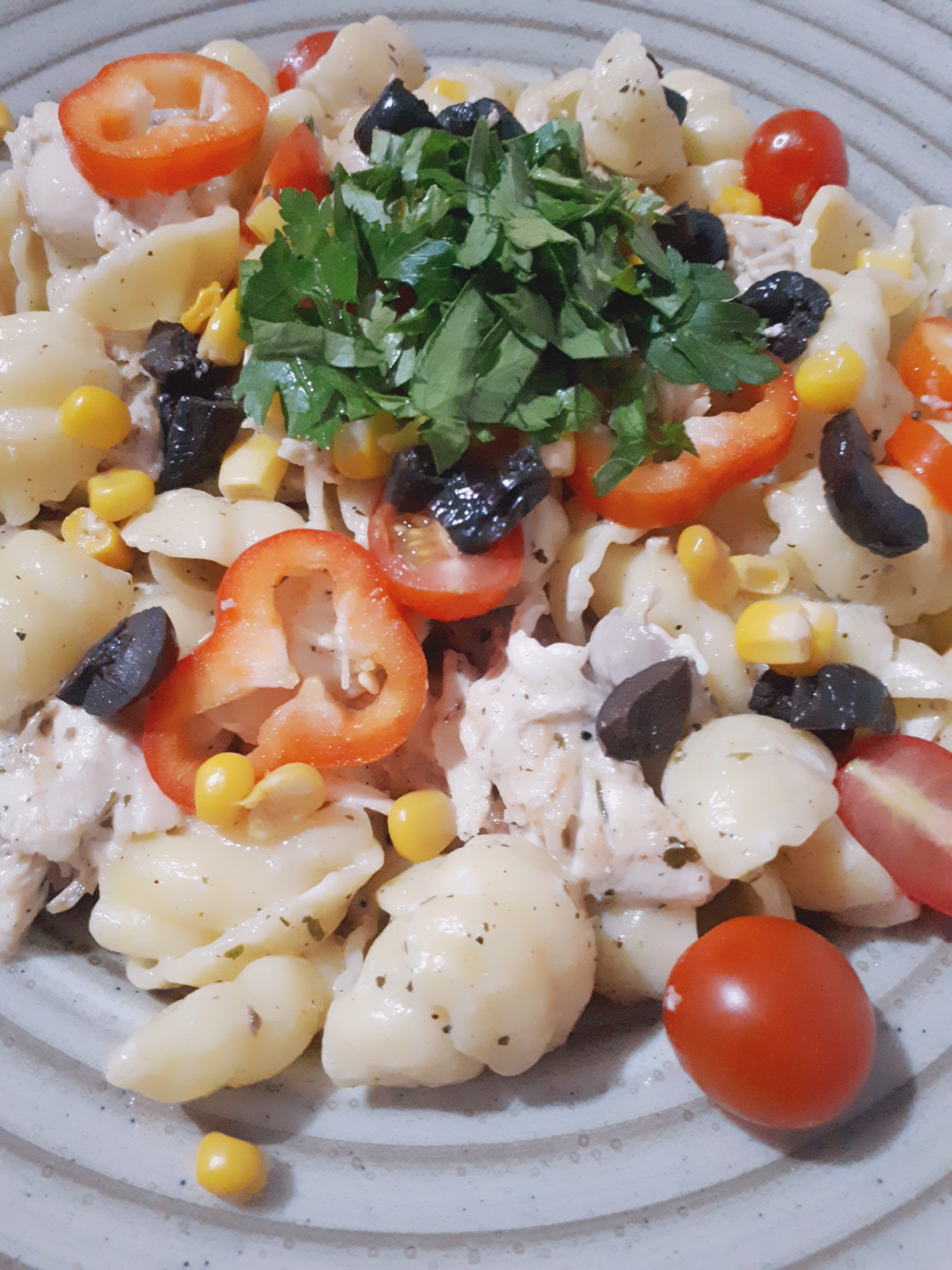 - Üzerine kapya biber, zeytin, mısır ve maydanoz eklenir ve servis edilir.