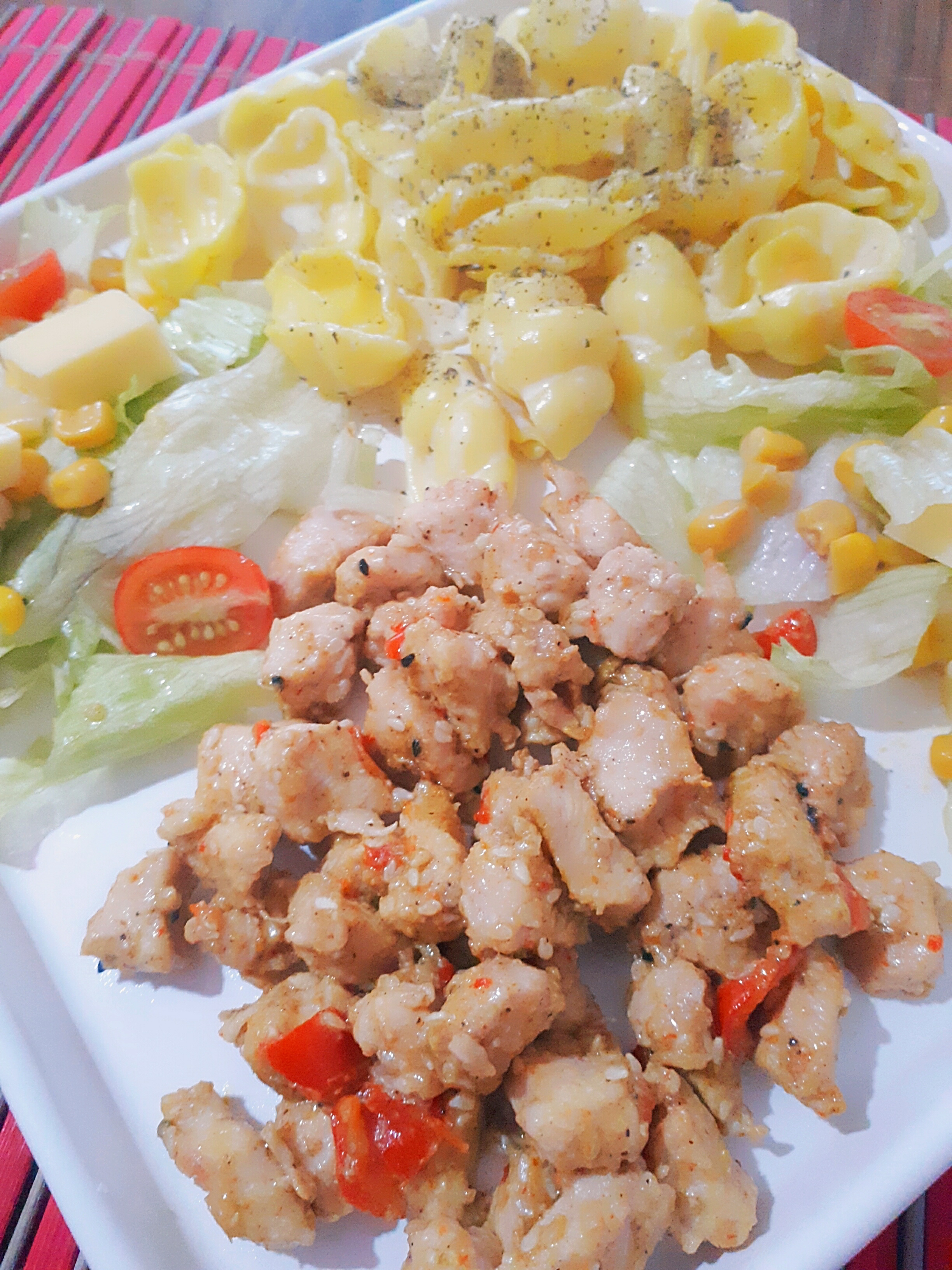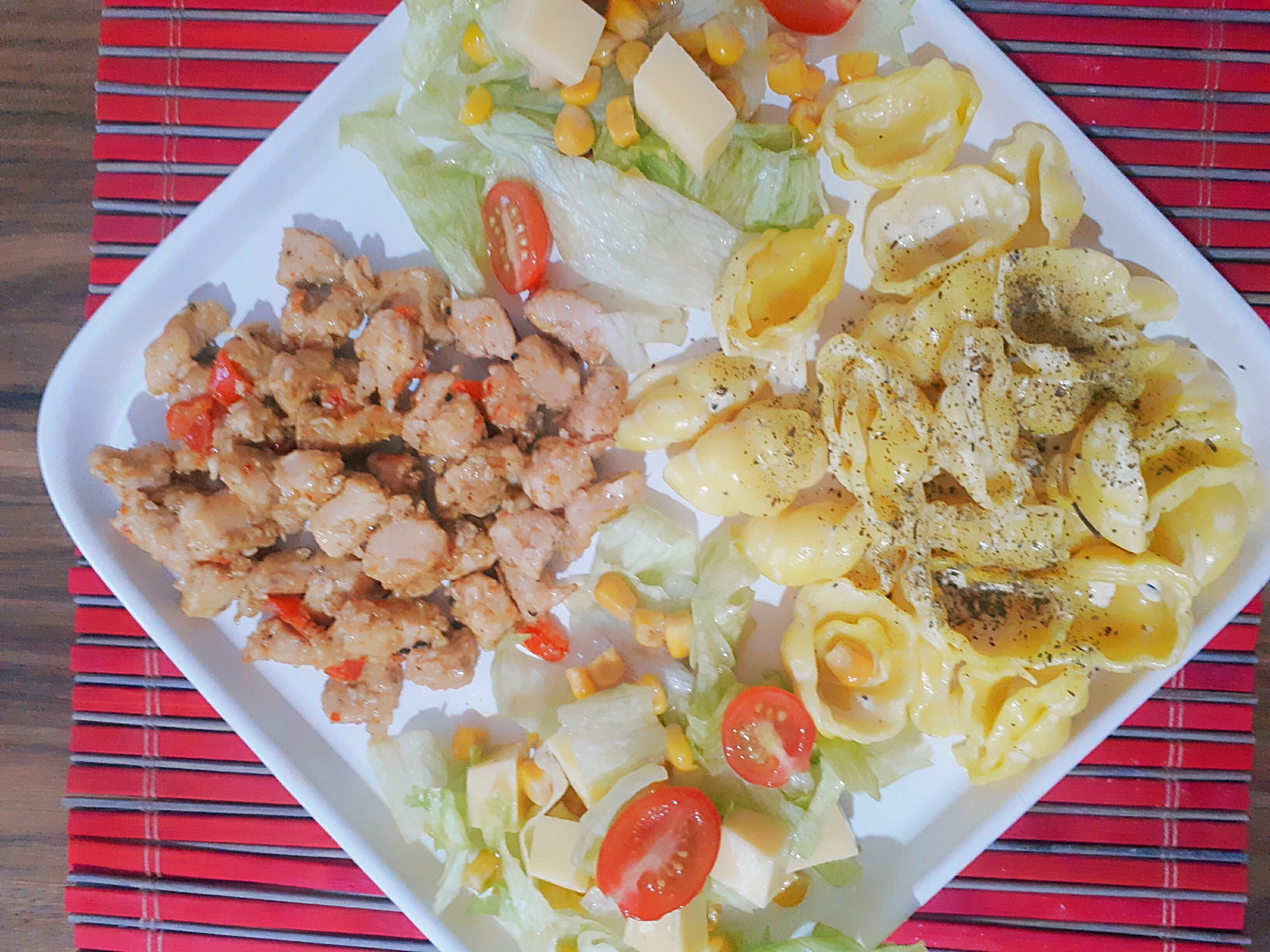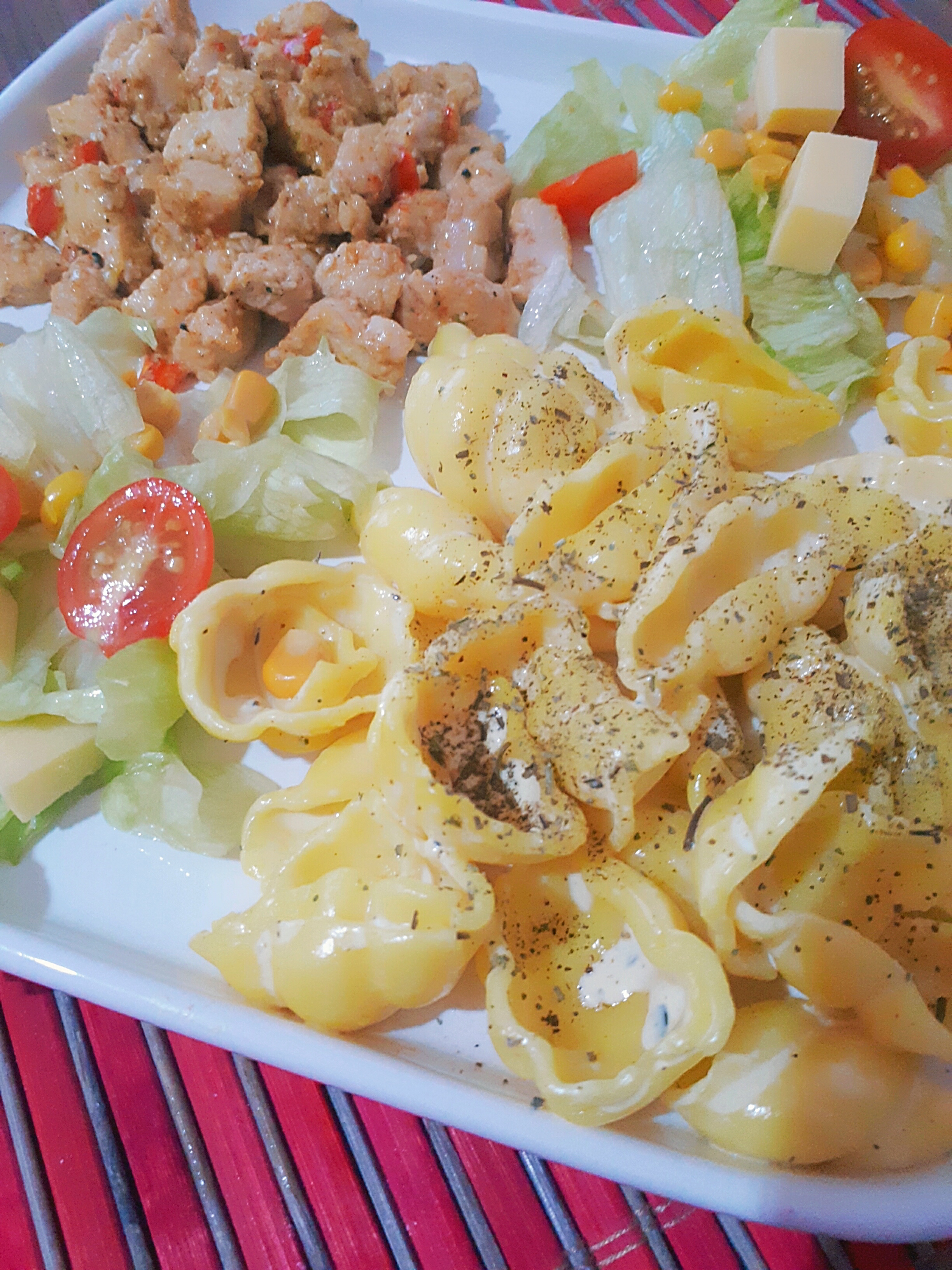 Ama şimdi alışveriş merkezlerinde yedigimiz makarna tavuk salata üçlüsünü evde yapmaya ne dersiniz.
