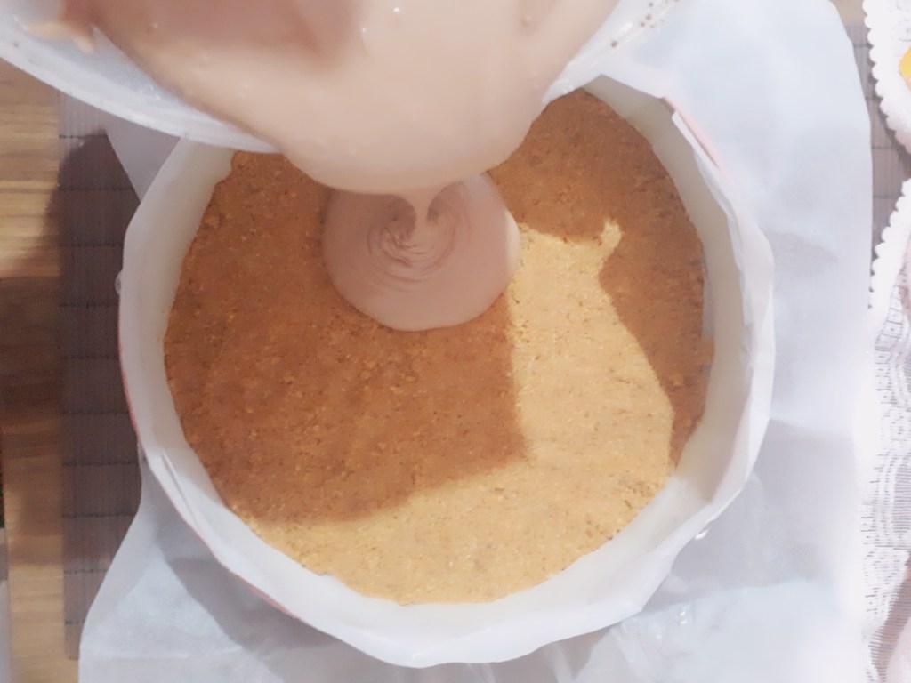 - Tabanı için, tereyağını eritelim.Rondoda çektiğimiz biskuvinin içerisine dökelim ve karıştıralım.