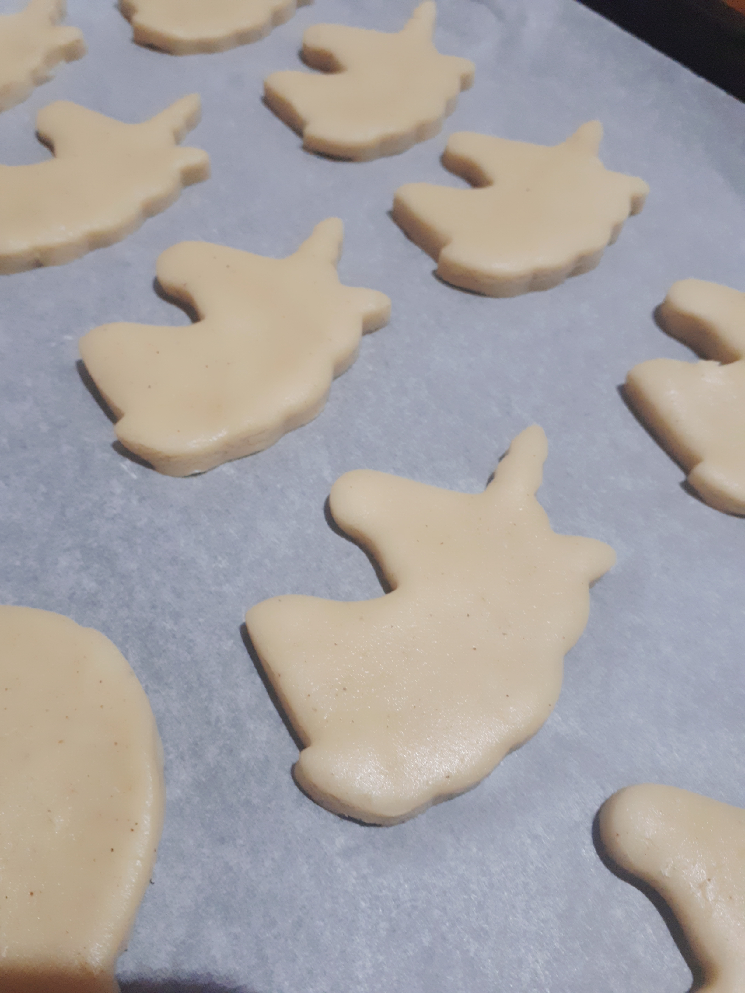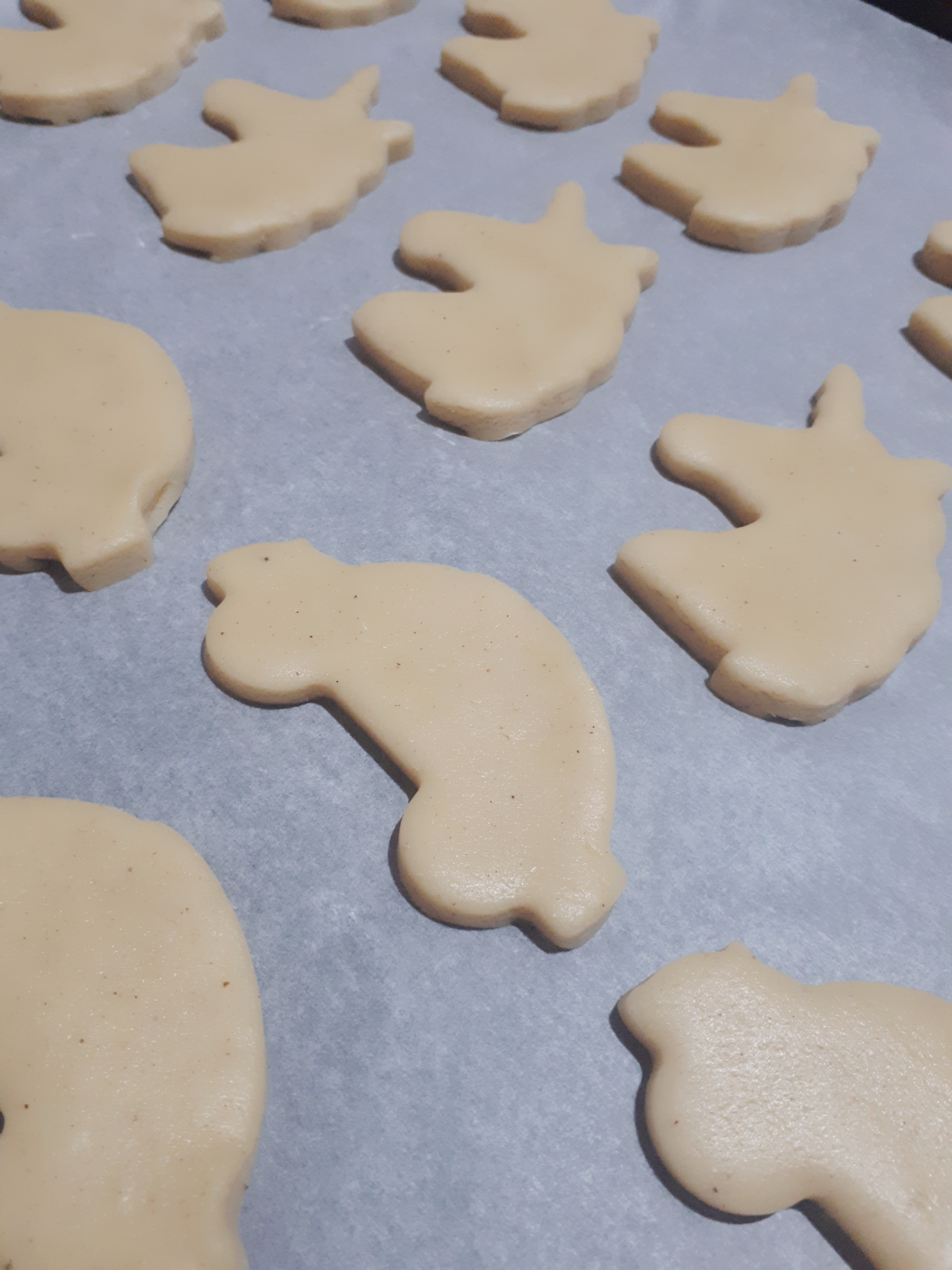 - Daha sonra istenilen kalıplarla kesilir ve 165° ısıtılmamış fırında pembelesmeden pişirilir.