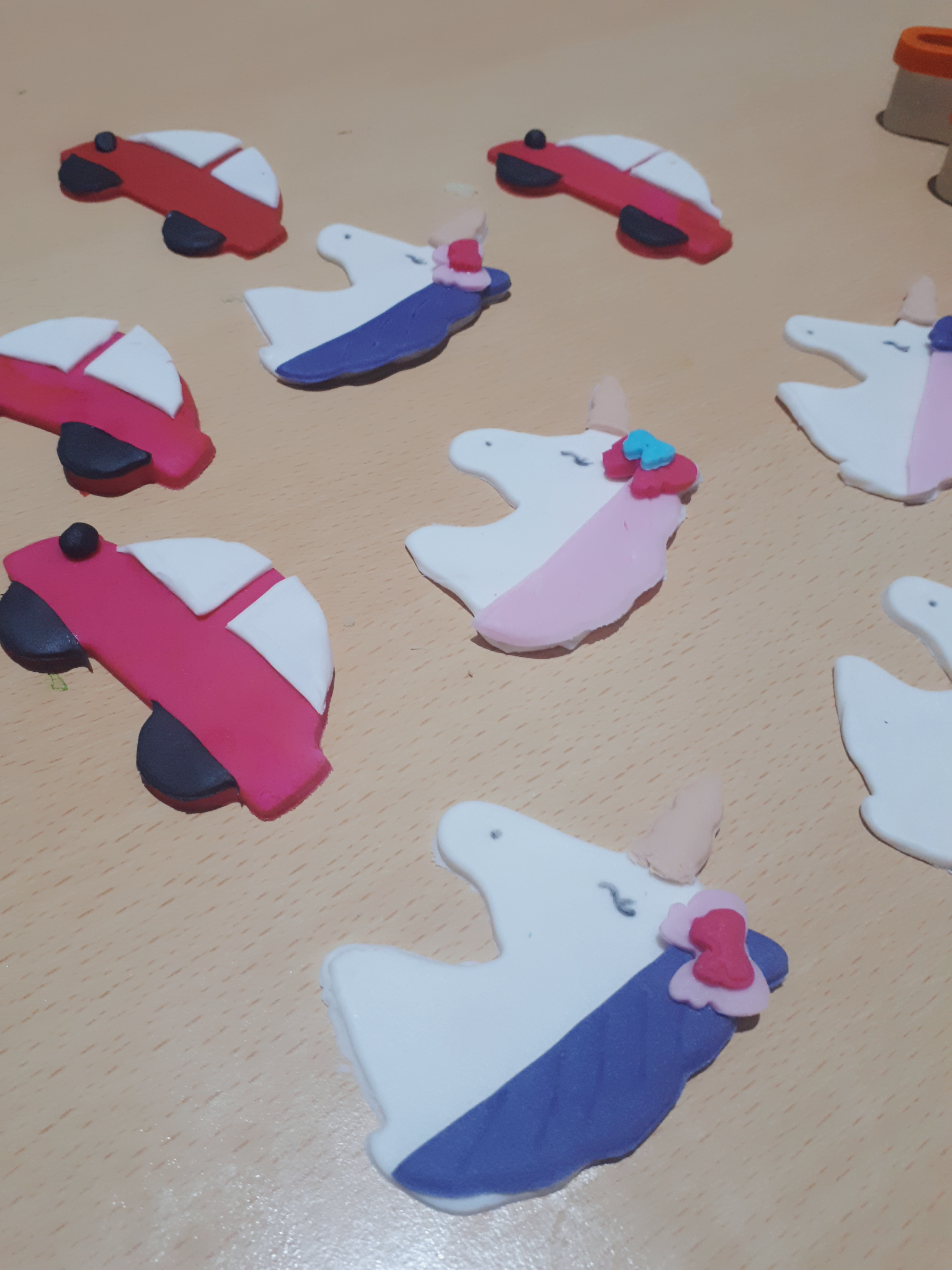 - Şeker hamurundan süslemeleri hazırlamak için bir parça seker hamurundan alın ve merdane yardımı ile açın.(Açarken nişasta kullanılabilir)