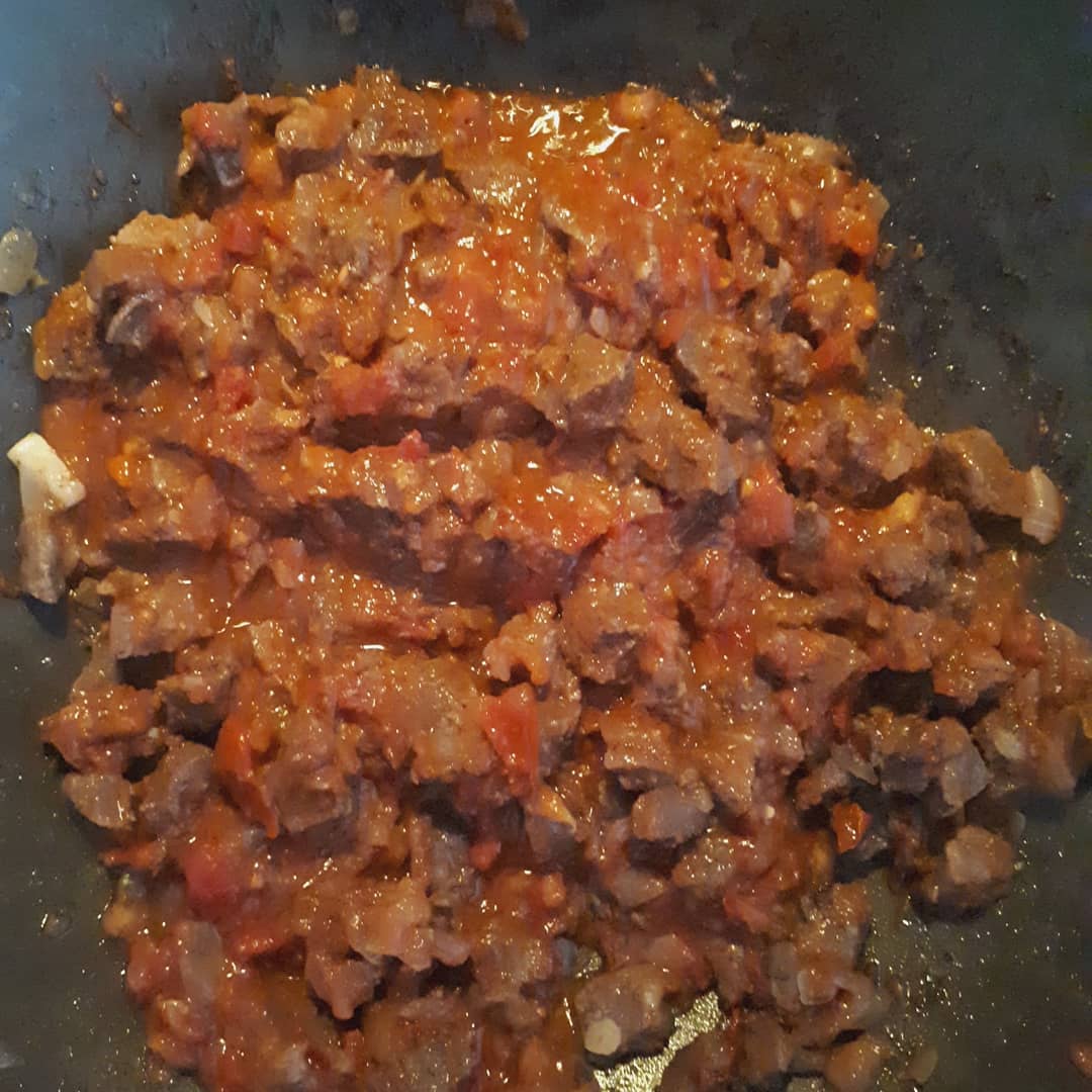 - Salça, domates sosu, karabiber ve tuz eklenir, karıştırılır. Etlerin pişme durumuna göre su eklenir.