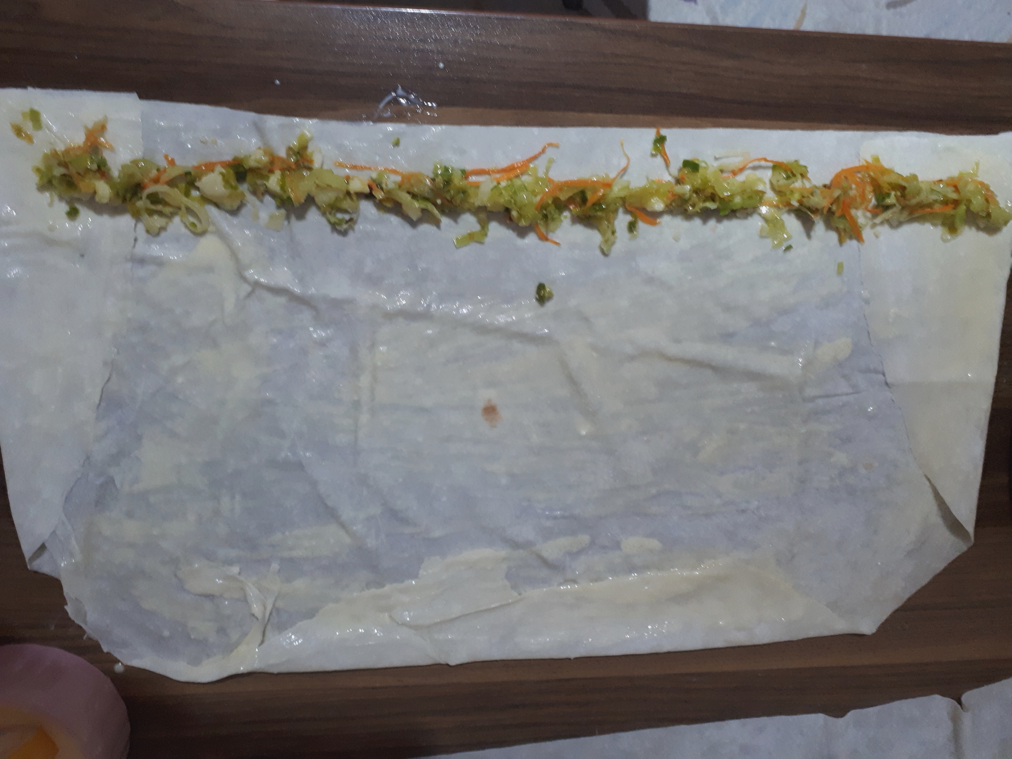- Diğer yufkalarıda ayni sekilde sararak yerlestirelim.