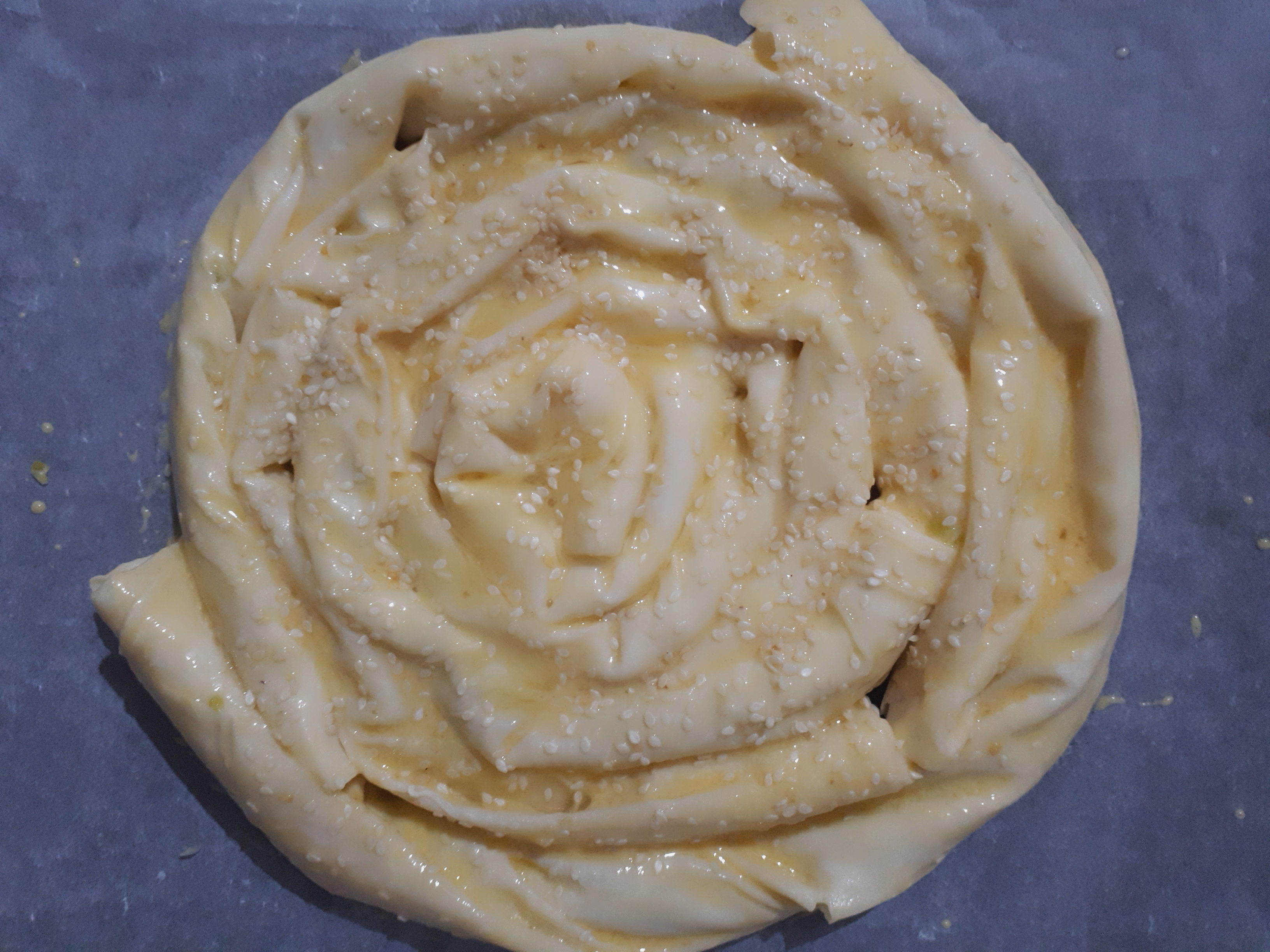 - Artan sosun icerisine yumurta kırarak çırpalım ve böreğimizin üzerine sürelim.Son olarak çörek otu veya susam serperek önceden ısıtılmış 180°fırında üzeri kızarana kadar pişirelim.