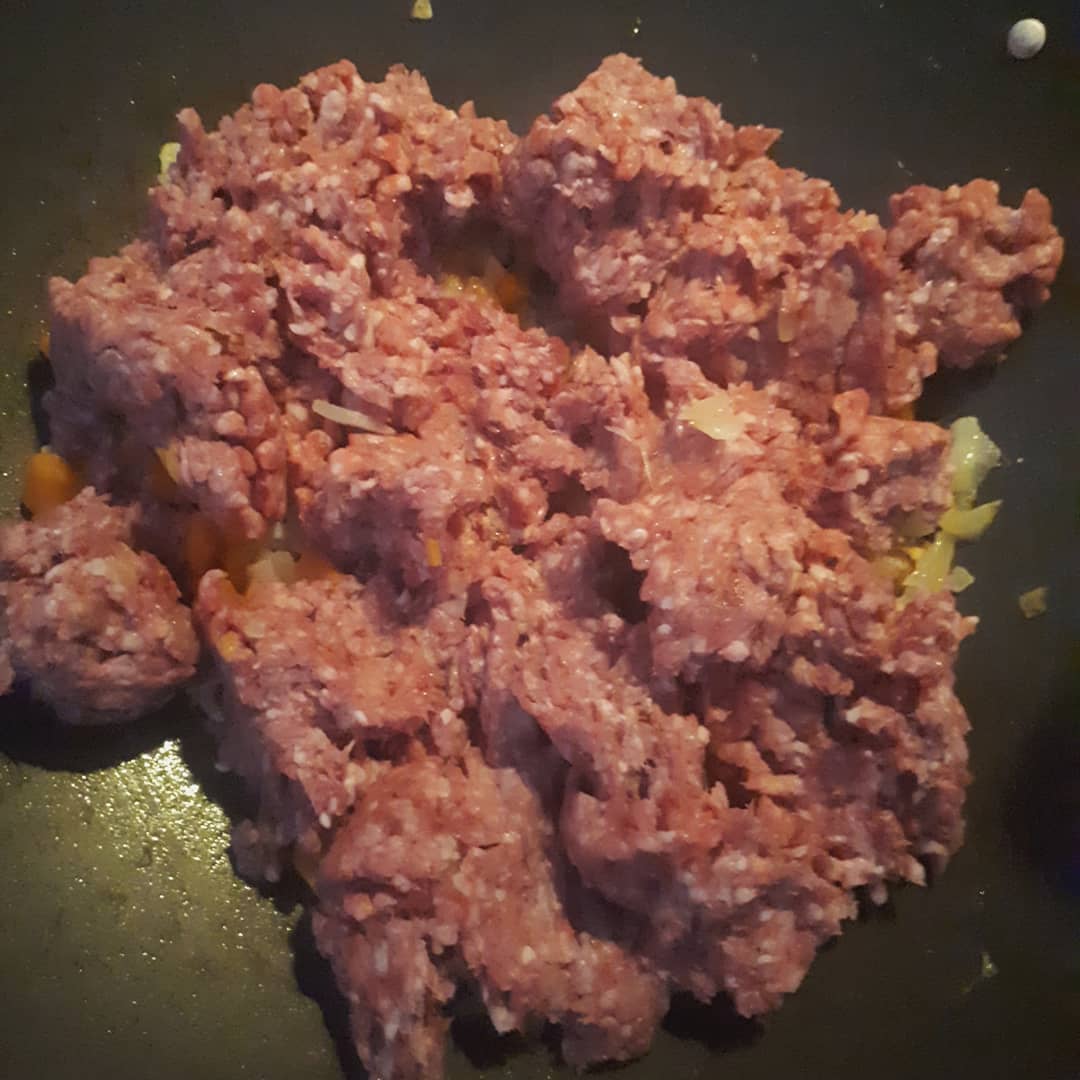 - Havuç yumuşadıktan sonra kıyma eklenir ve suyunu çekene kadar pişirilir.
