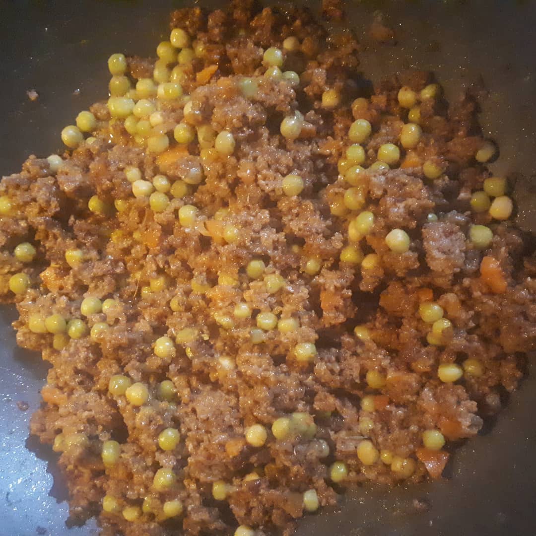 - Üzerine baharatları, tuzu ve bezelye eklendikten sonra yarım su bardağı su katılarak pisirilir.