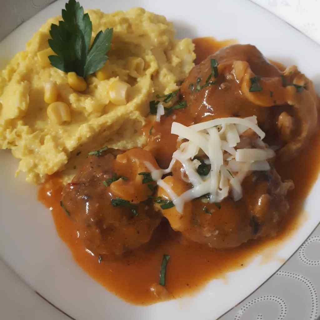 Mısır puresi yaninda mantar soslu köftemizi servis edelim.