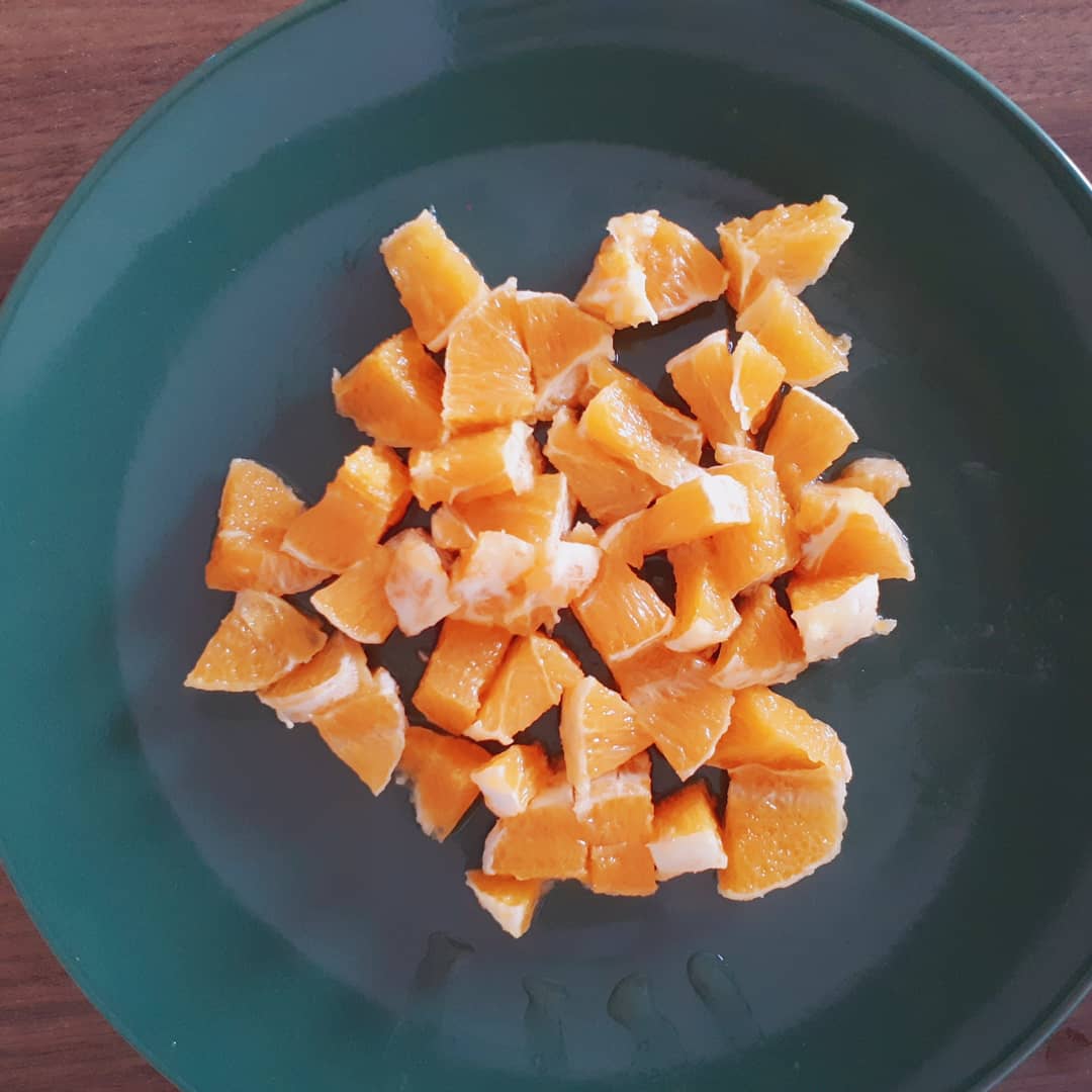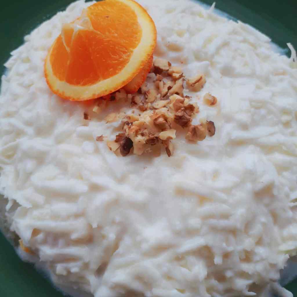 - Tabağın en altına portakalı uzerine yoğurtlu kerevizi ekleyelim.