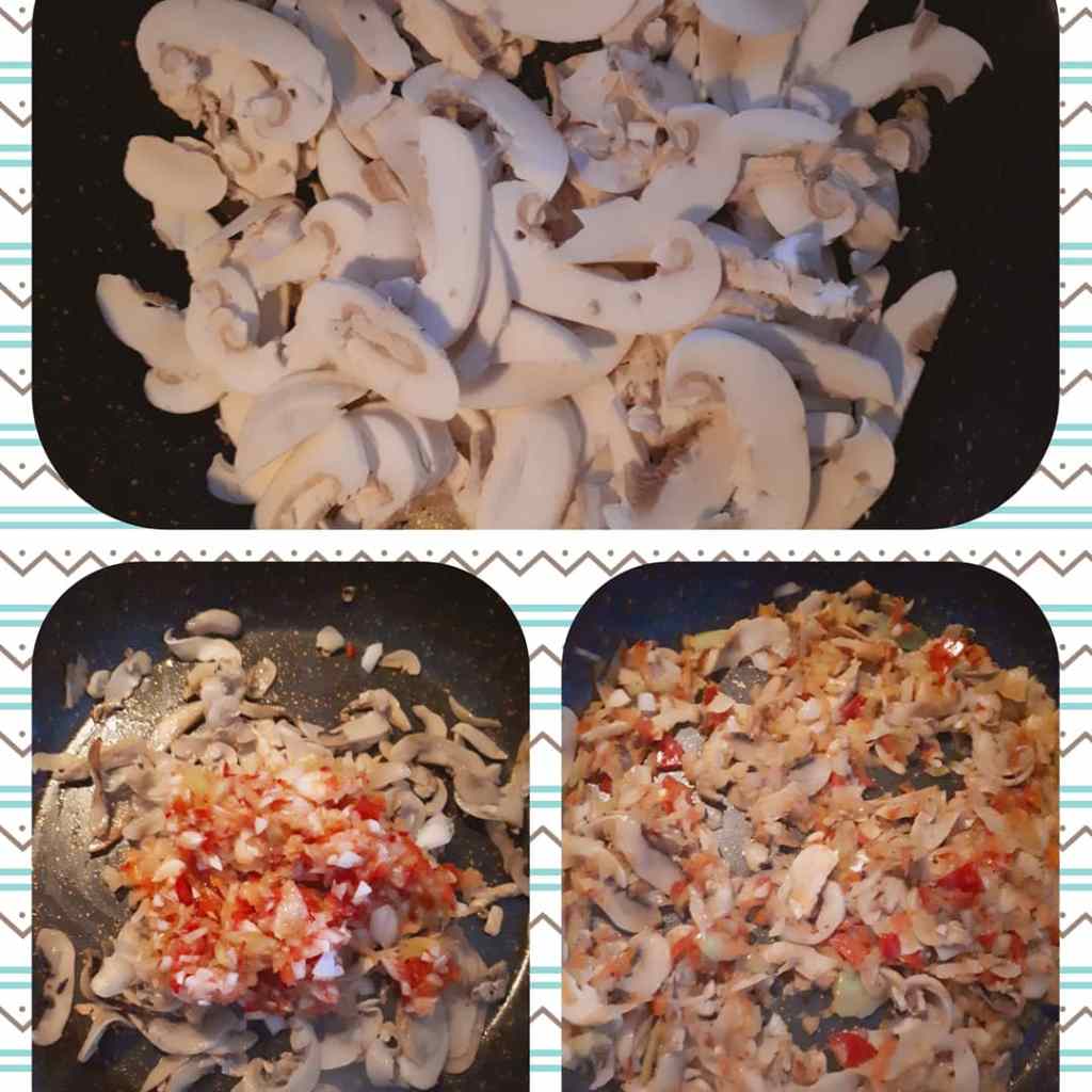 - Tavaya mantarları alalım ve suyunu salıp çekene kadar pişirelim.