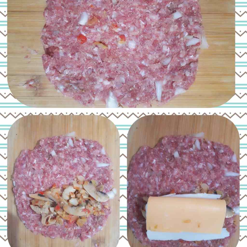 - İçerisine yarısına gelecek sekilde mantar soteden koyulur.Uzerine kaşar peyniri ve chedar peyniri eklendikten sonra köftenin diğer yarısı ile üzeri örtülür.