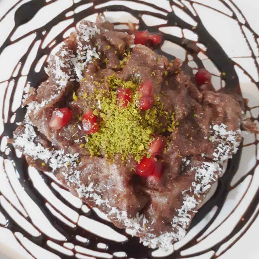 - Ara katı için cevizimizi ve çikolatamızı serpelim.Kalan 3 güllaç yaprağına da aynı işlemi uygulayalım.