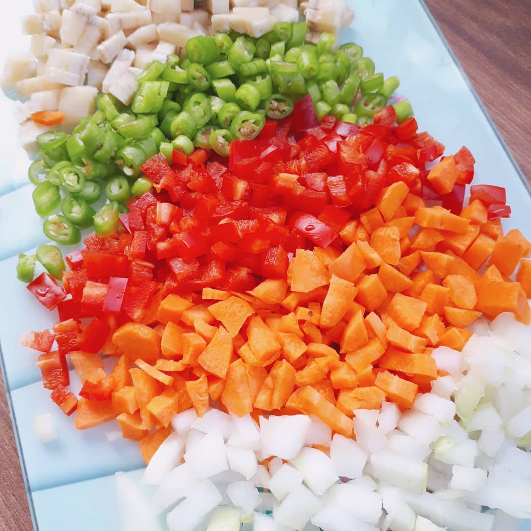 Bu arada enginar, havuç, soğan ve biberleri ufak ufak doğrayalım.