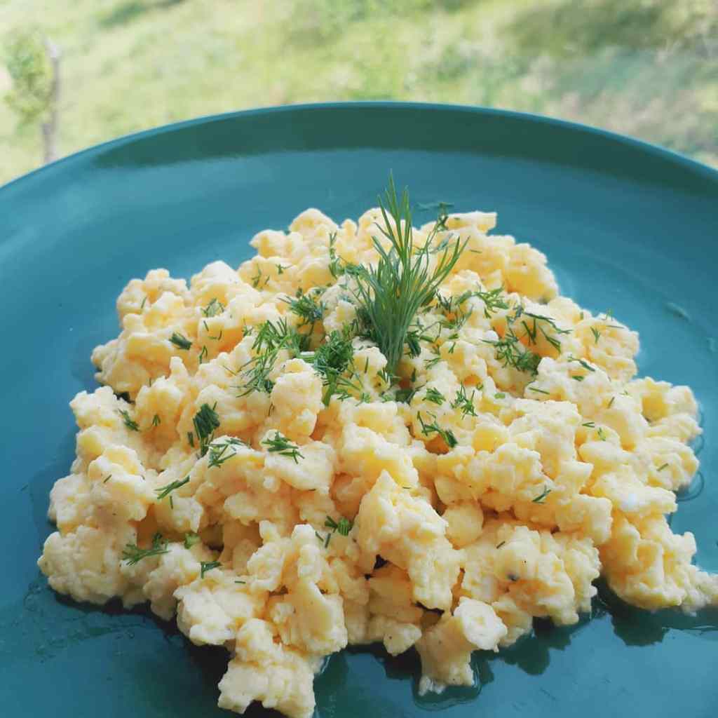Tavada tereyağı eritilir.Üzerine çırpılan yumurta eklenir. Kaşık yardımı ile dıştan içe doğru karıştırarak pişirilir.
