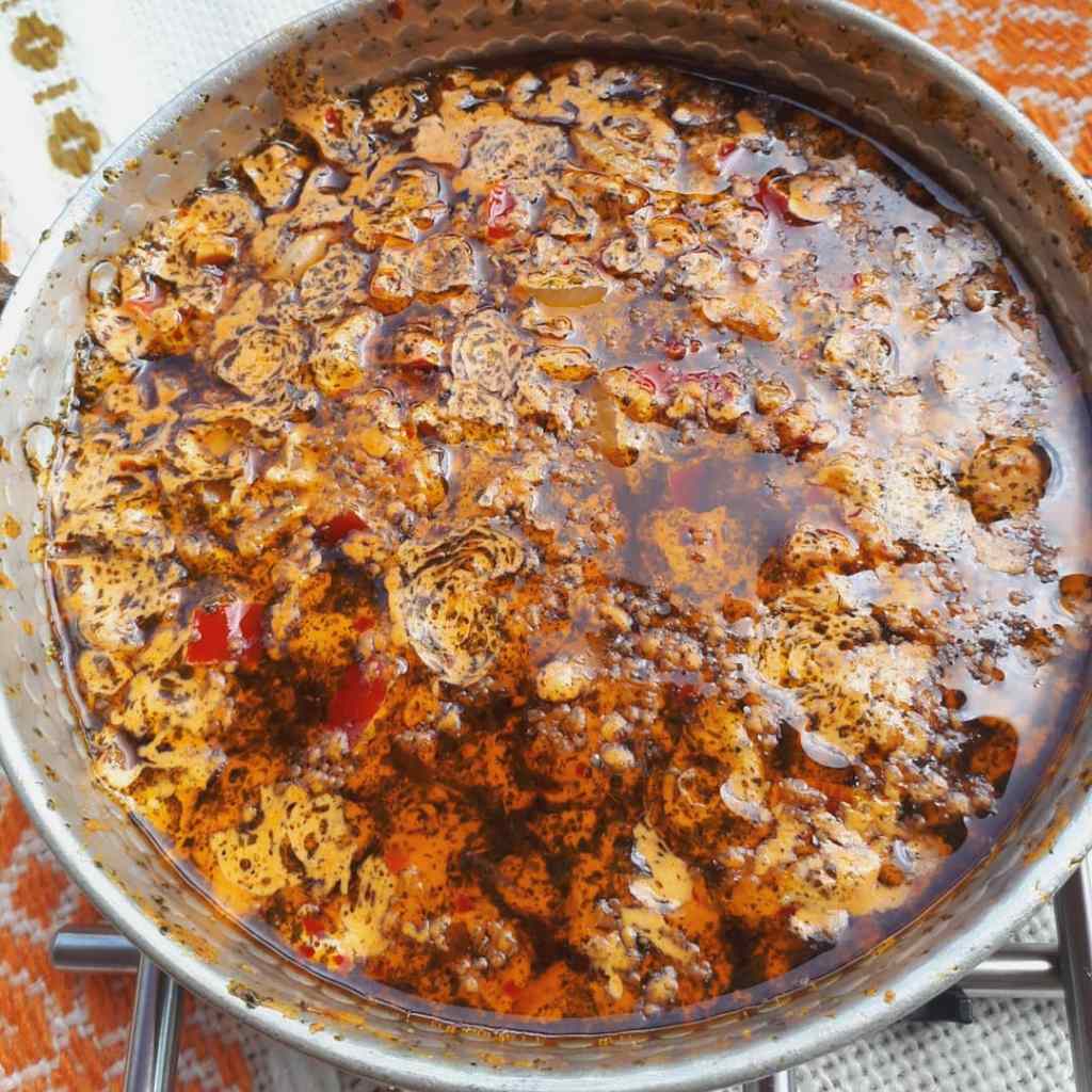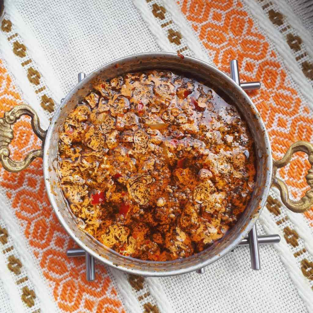 Tuzlu yoğurt odun ateşinde koyu kıvam alana kadar sürekli karıştırarak taze yogurdun pişirilmesi ve tuzun eklenmesi ile son bulan kıvamı süzme yogurda benzeyen bir tariftir.Tabiki ben Hatay’dan hazır aldım.