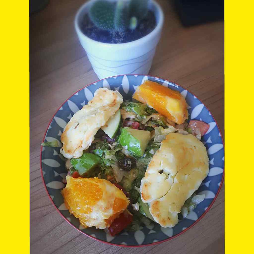 Üzerine doğradığımız portakalı ve kızarttığımız peyniri ekleyip servis edelim.