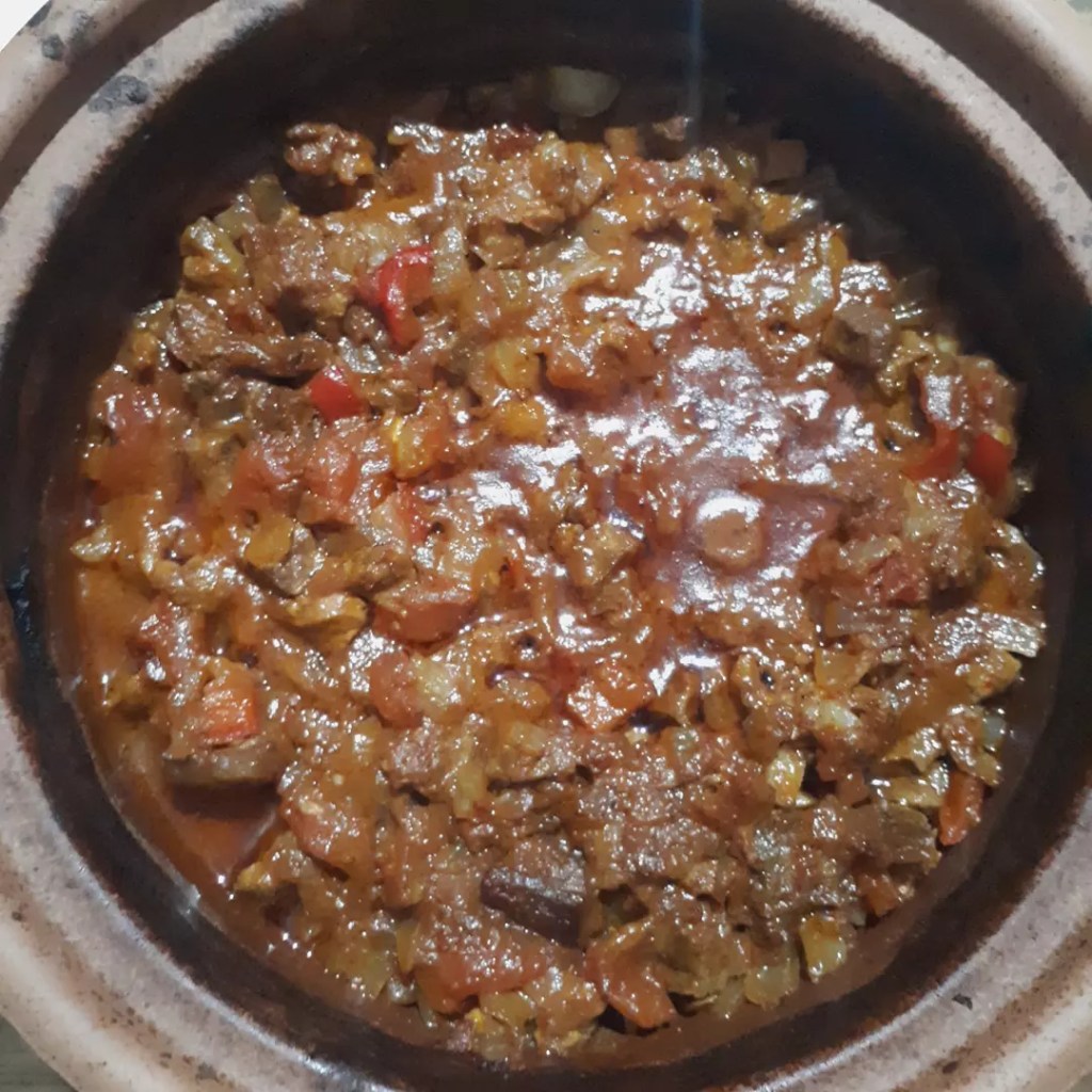 Etin domates, biber, sogan ve sarımsak eşliğinde baharatlarla harmanlanmasıyla toprak güveçte veya tepside pişirilen bir yemek çeşididir.