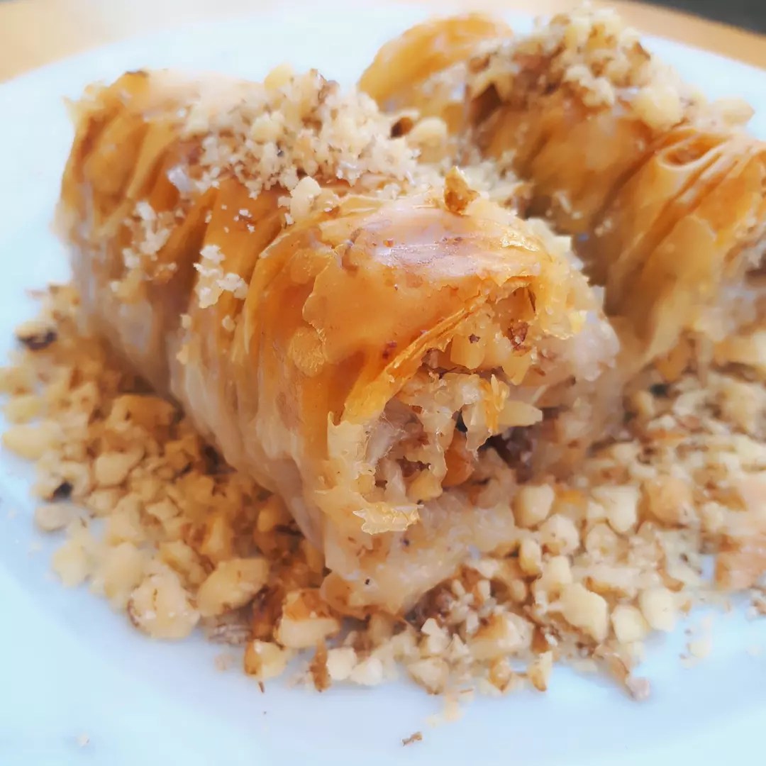 Baklava yufkası acmadan kolaylıkla yapabileceğiniz tahin, ceviz ve kaymak uyumuyla midelerin şenleneceği bir tarif.