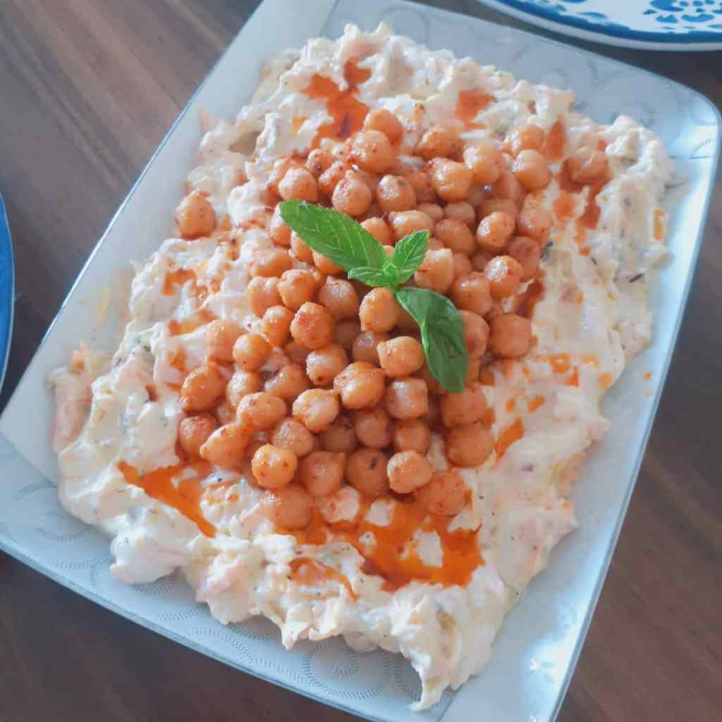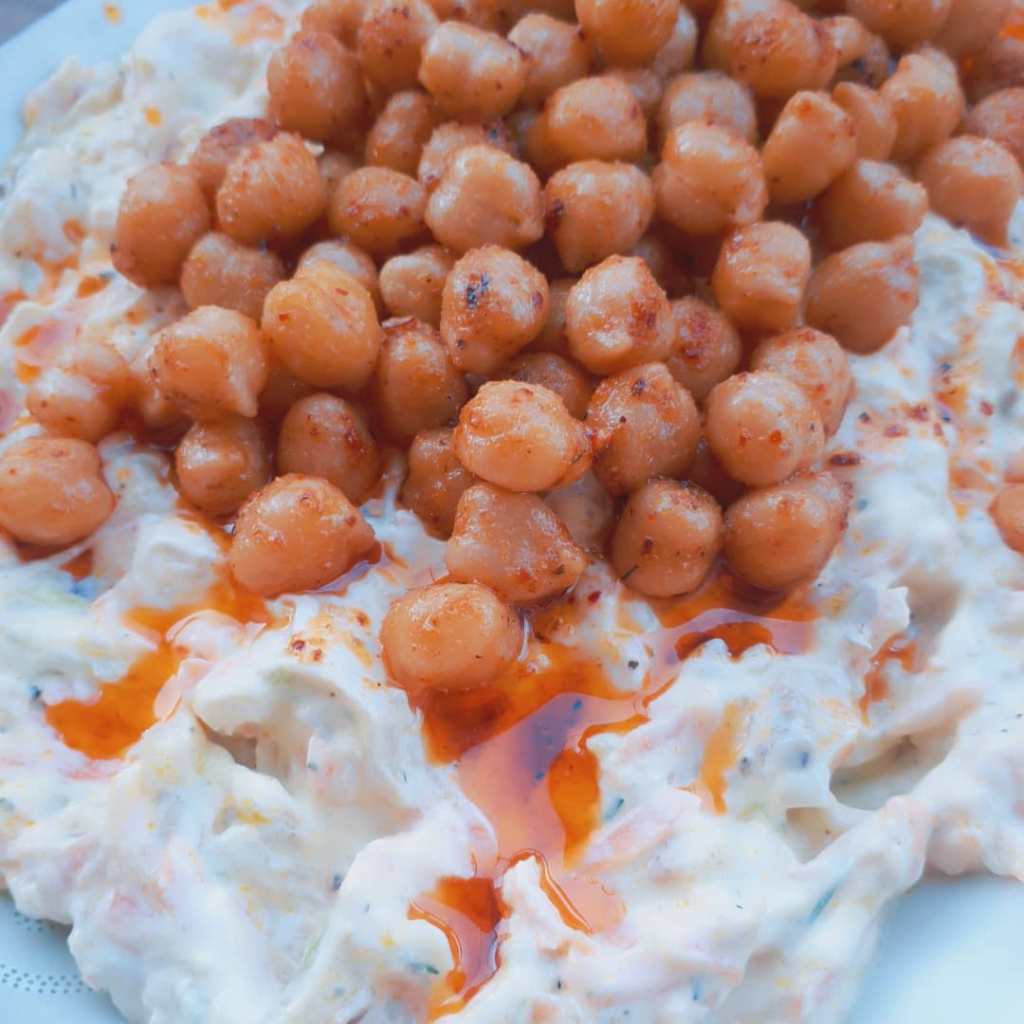 Yoğurtlu kabağımızı tabağına alıp üzerine nohutumuzu ilave edelim ve servis.