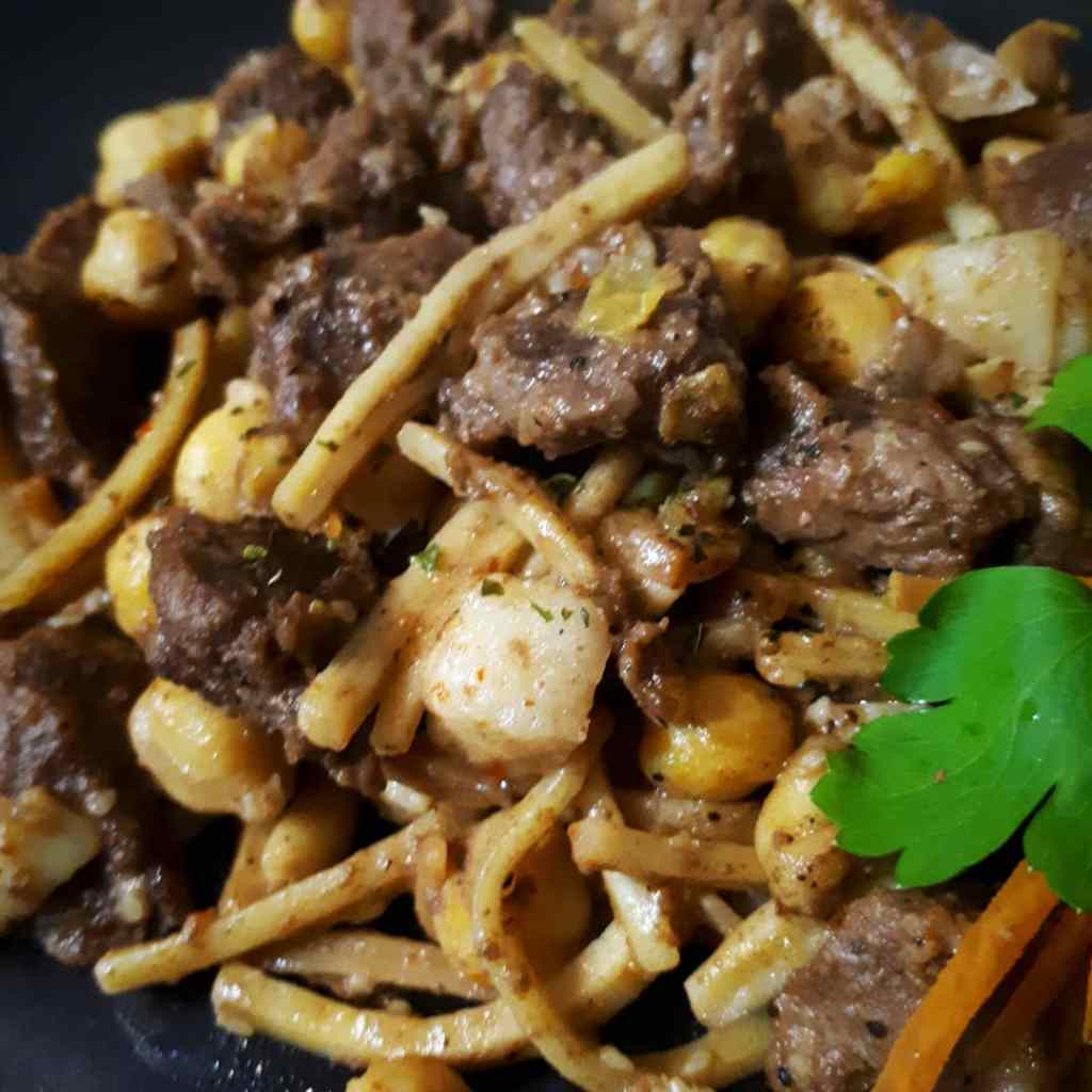 Adını ne koysam bilemedimHem doyurucu olsun hemde tek çeşitte atlatmak istediğim bir akşam öğünüydü.Ete yakışacağını düşündüğüm herşeyi koydum.