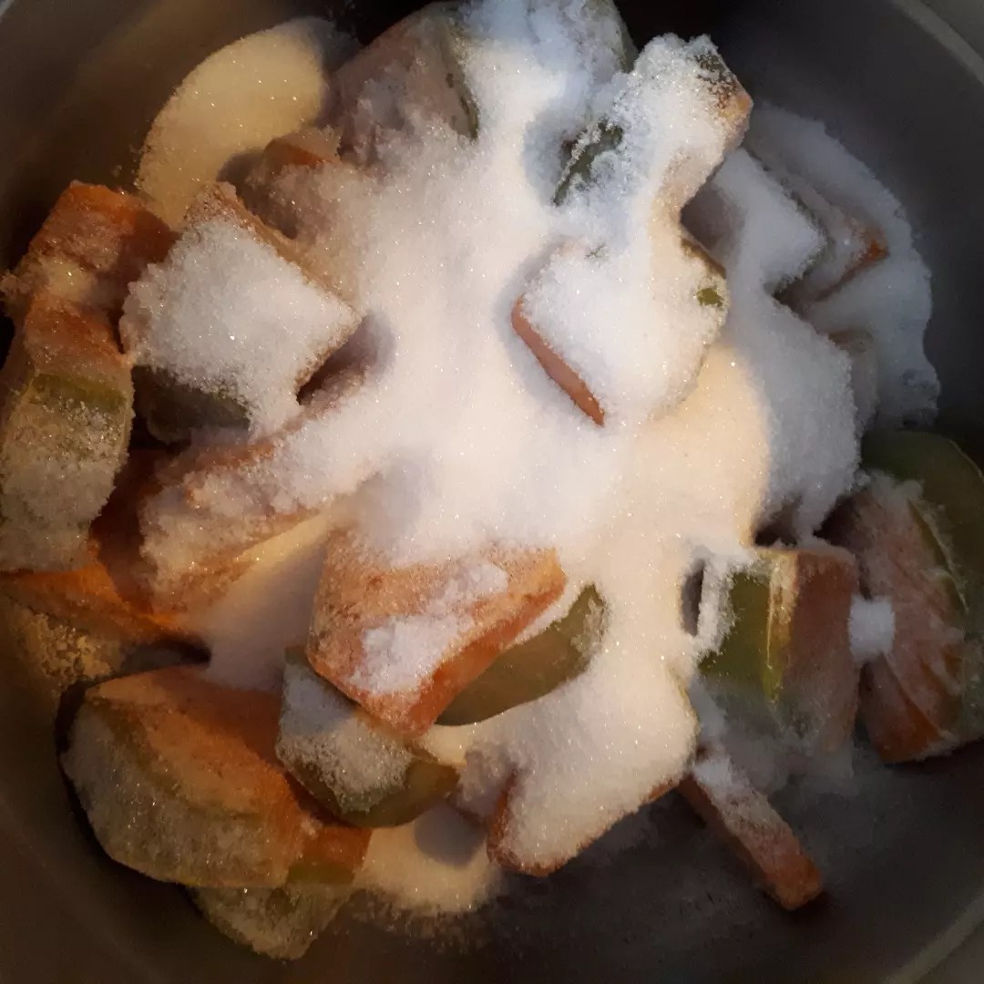 Tencereye balkabağımızı koyup üzerine şekerimizi ilave edelim.