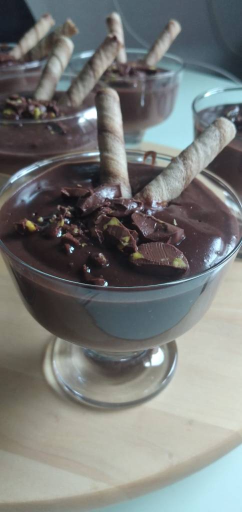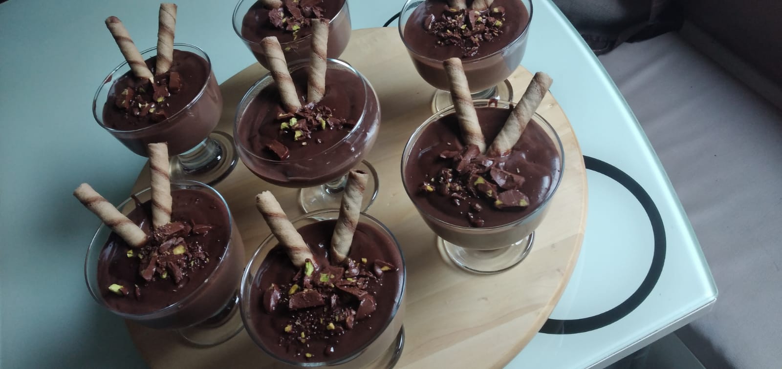İlk olarak süt, şeker, nişasta, krema ve kakao eklenerek karıştırılır ve pişirilir.