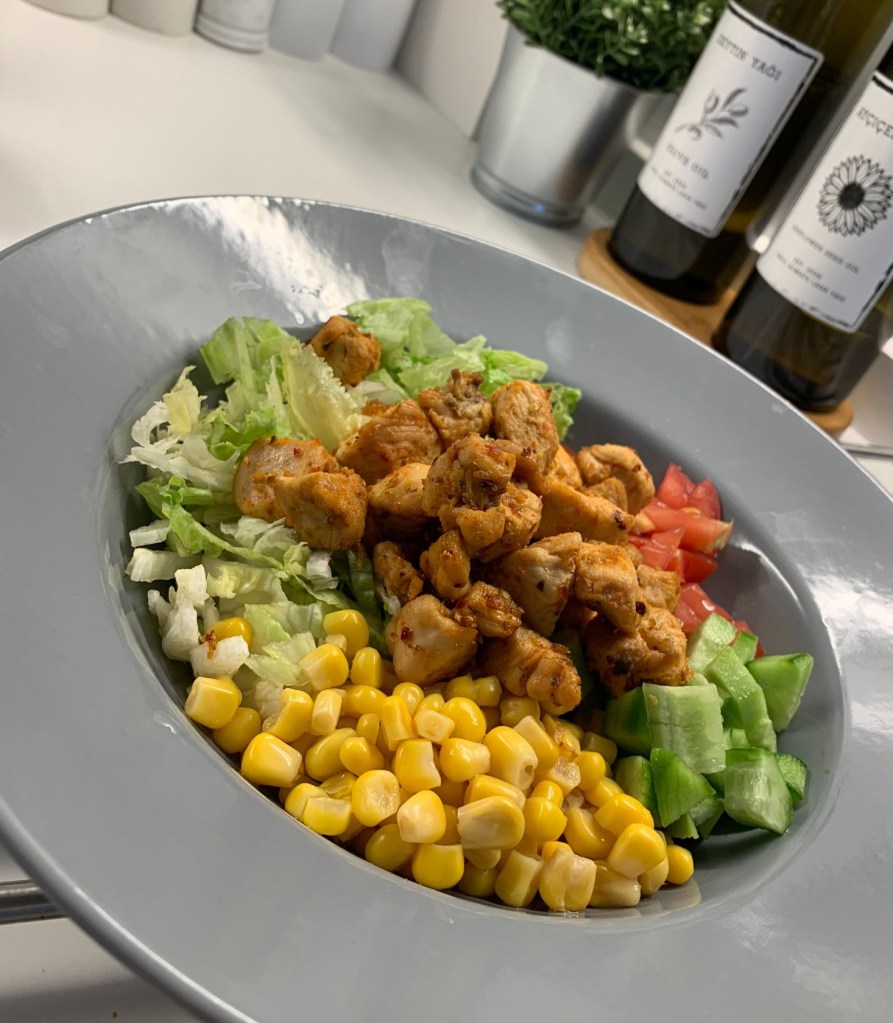 Salata kasesine malzemeleri ekleyip üzerine sosu ilave edin.Afiyet;)