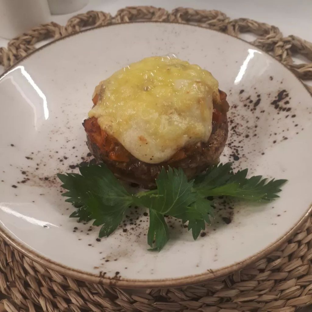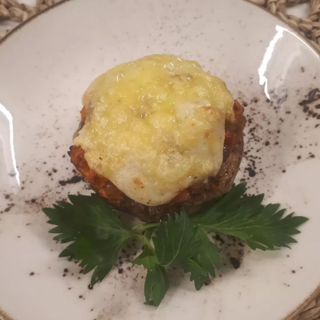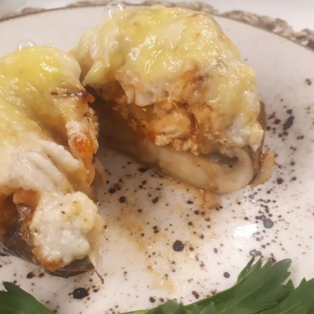 Mantarlarımızı iyice yıkayıp temizleyelim.Tepsiye dizip 170° fırına verelim.Suyunu salıp cektikten sonra icerisine tavuk sotemizi koyalım.Üzerine beşemal sosu döküp tekrar fırınlayalım. Çıkarmaya yakın üzerine rendelenmiş kaşar peynirini ilave edip fırında 5 dk kadar bekletelim.