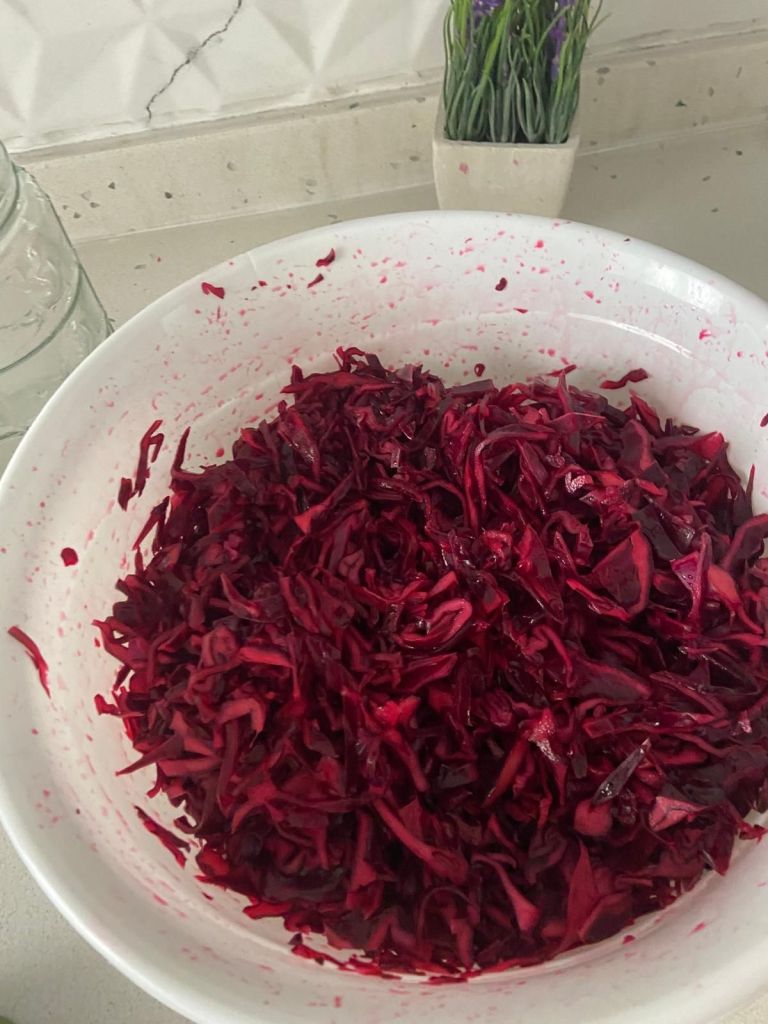 Lahanayı doğra üstüne malzemeleri dök yaklaşık 10-15 dk ovala kavanozlara koy buzdolabında 2-3 gün beklet sonrasında hazır.