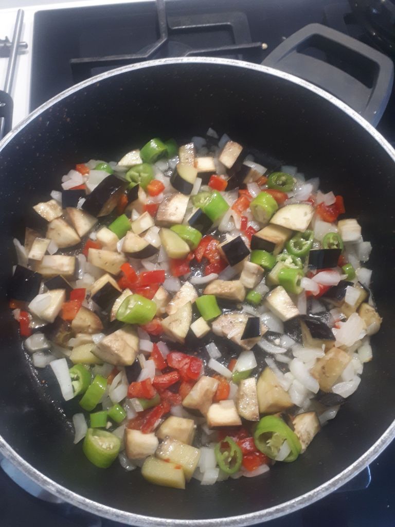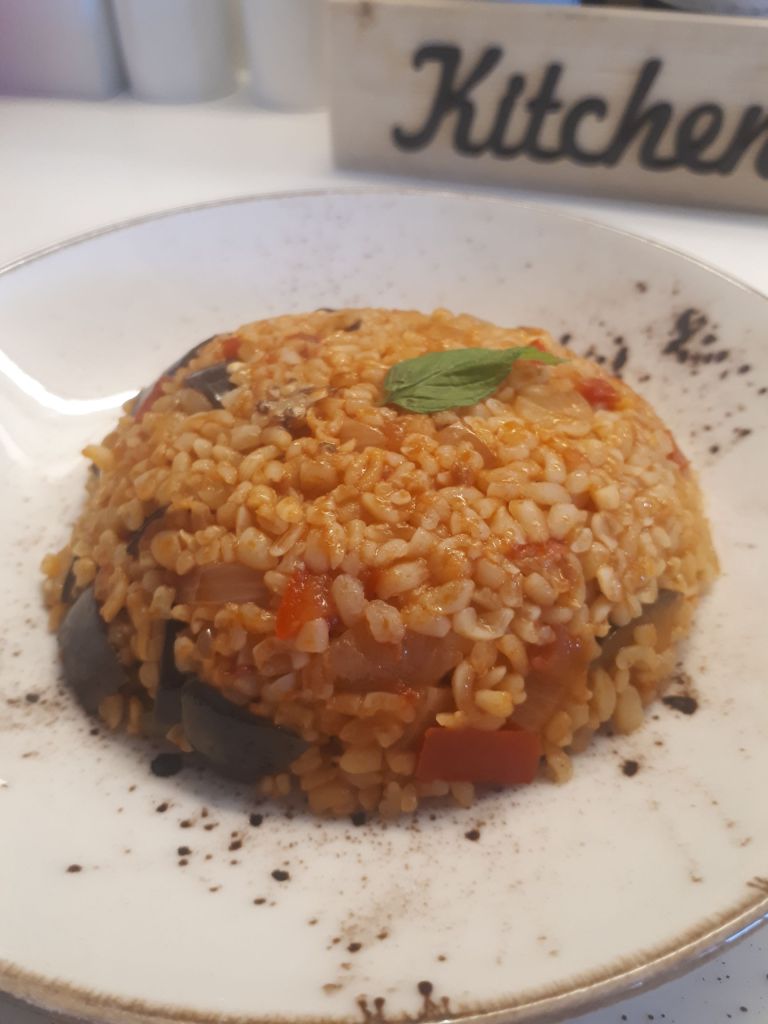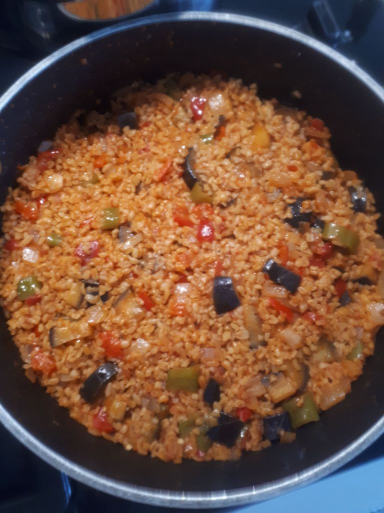 Sebzelerimizi küçük olmayacak şekilde dograyalim.Tencereye sıvı yağı alalım. Üzerine soğan, biber, patlıcanı ilave edip kavuralim.Sonra salçasını ekleyip iyice karıştıralım rengini versin. Yıkadıgımız bulguru ve tuzu ilave edelim. Sonrasında üzerini 2 parmak geçene kadar suyu ekleyelim. Kısık ateşte pişirelim.Afiyet;)