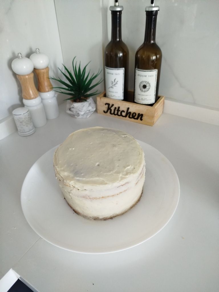 O pişerken biz dolaptaki kremamızı çıkarıp geri kalan tereyağı ile çırpalım.Vanilyayı ekleyip son kez karıştırdıktan sonra kenara koyalım.