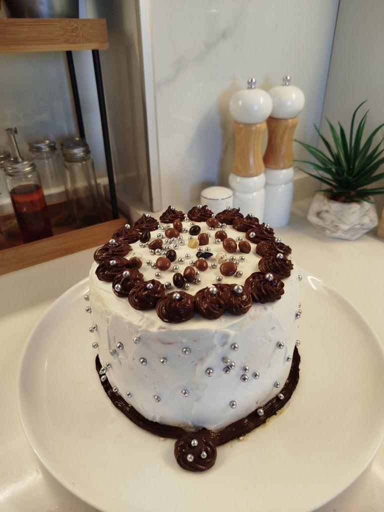 Sıkma torbası ile yaptığım ganaj için kremayı ısıtıp içerisine çikolataları ilave edip eriyince dolaba kıvam alması için kadıralım.En son süslemesini yapalım.