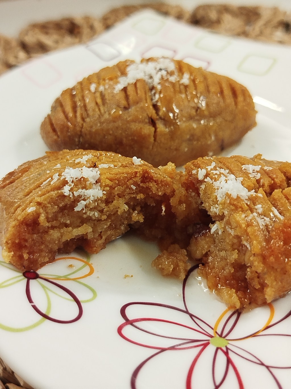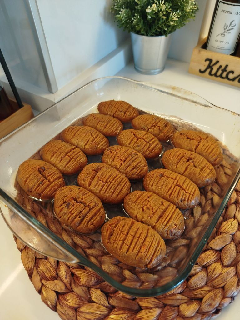 Hamurunun ceviz hariç tüm malzemeleri karıştırıp yoğuralım.Son olarak cevizi ekleyelim.İstediğiniz şekile getirelim. İster yuvarlak ister oval. Üzerine bıçak yardımı ile çizikler yapalım. 180°fırında 30 dk.pişirelim.İlk sıcağı çıktıktan sonra soğuk şerbetini dökelim ve çekmesi için kenarda bekleyelim. Sonra dolaba kaldıralım.