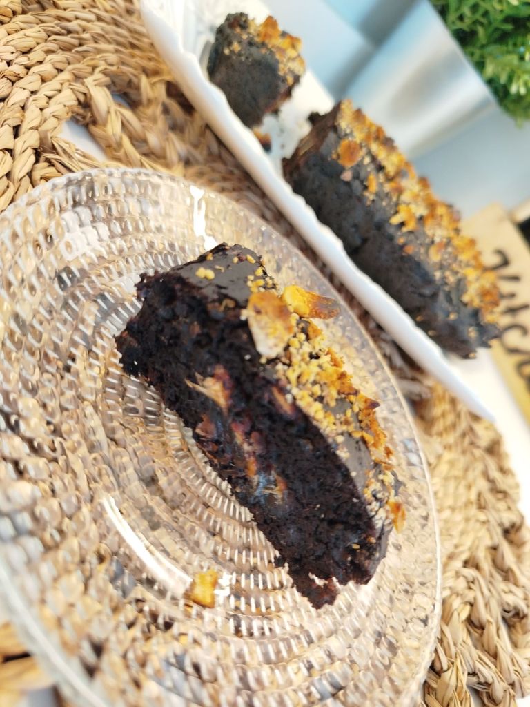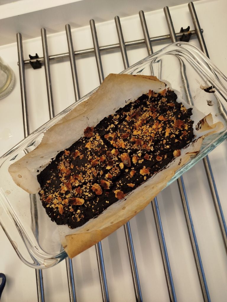 Yağlı kagıt serili borcama ilave edip üzerini ıslak kaşık ile düzeltelim. Koyu olabilir kıvamı tedirgin olmayın. Üzerine ceviz, fındık veya kabak içi ile süsleyebilirsiniz. 25 dk. önceden ısıtılan 180° fırında pişirelim.. Bana iyi geldi…
