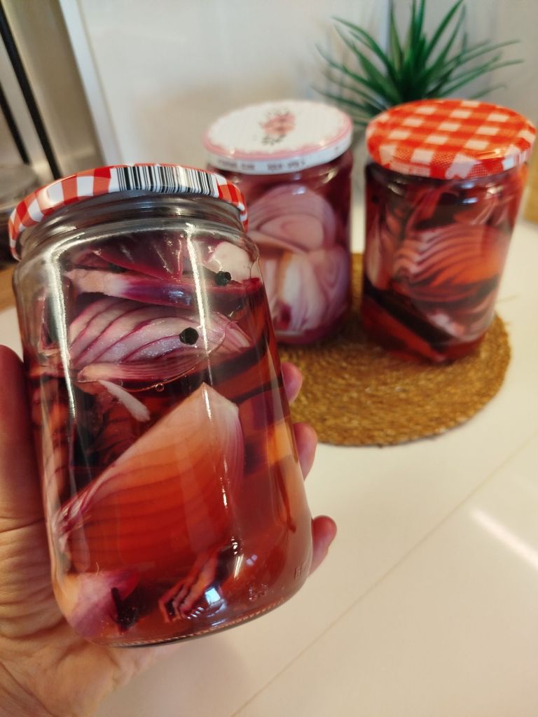 Yarımlık kavanoz için 1.5 büyük boy soğan yetiyor.