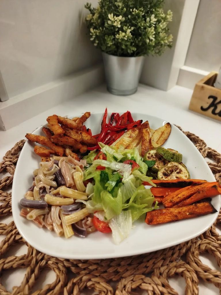 🌸ilk olarak kabak, kaptan, patates, havuç jülyen doğrayıp zeytinyağı ve baharatlarla buladım ve fırına yolladım.