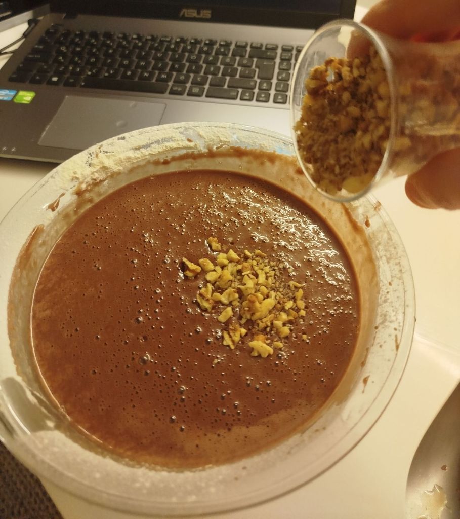 Ceviz İlavesi: Son olarak ceviz kırıklarını ekleyin ve mikser yerine bir spatula veya kaşık yardımıyla yavaşça karıştırın.