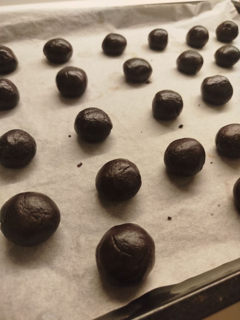 Hamurdan dilediğiniz büyüklükte (ceviz büyüklüğü idealdir) parçalar koparıp avucunuzda yuvarlayın. Yağlı kağıt serili fırın tepsisine aralıklı olarak dizin.
